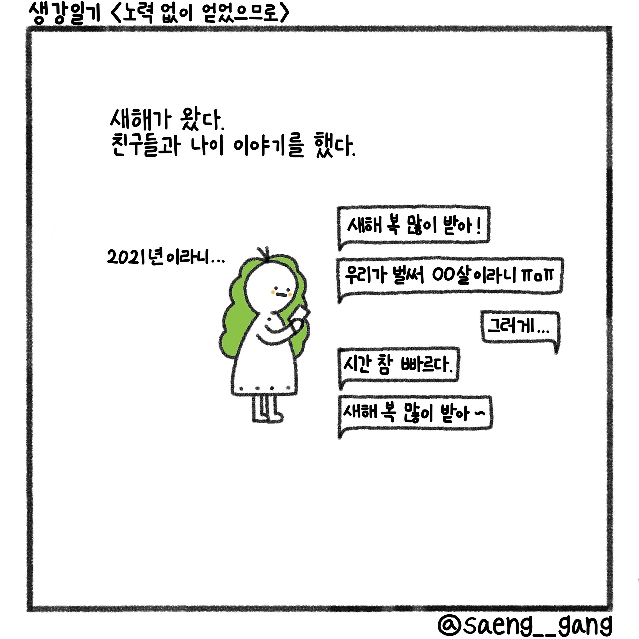 새해다. 꼼짝없이 한 살을 먹었다. 아무 일도 하지 않고 나이를 먹는 것에 성공했다. 내가 원하지도, 노력하지도 않았는데 나는 한 살을 더 먹었다.
