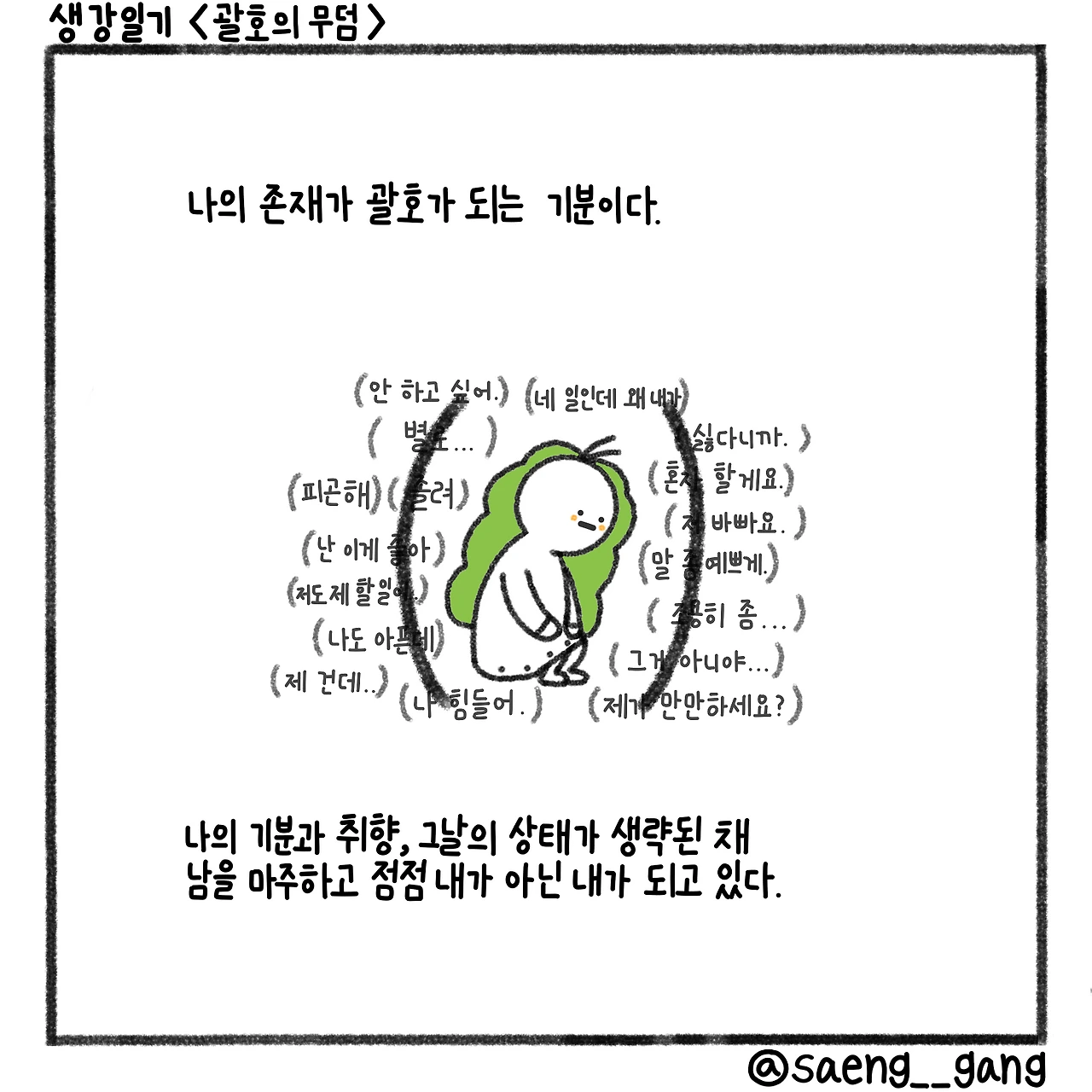 나의 존재가 괄호가 되는 기분이다.
