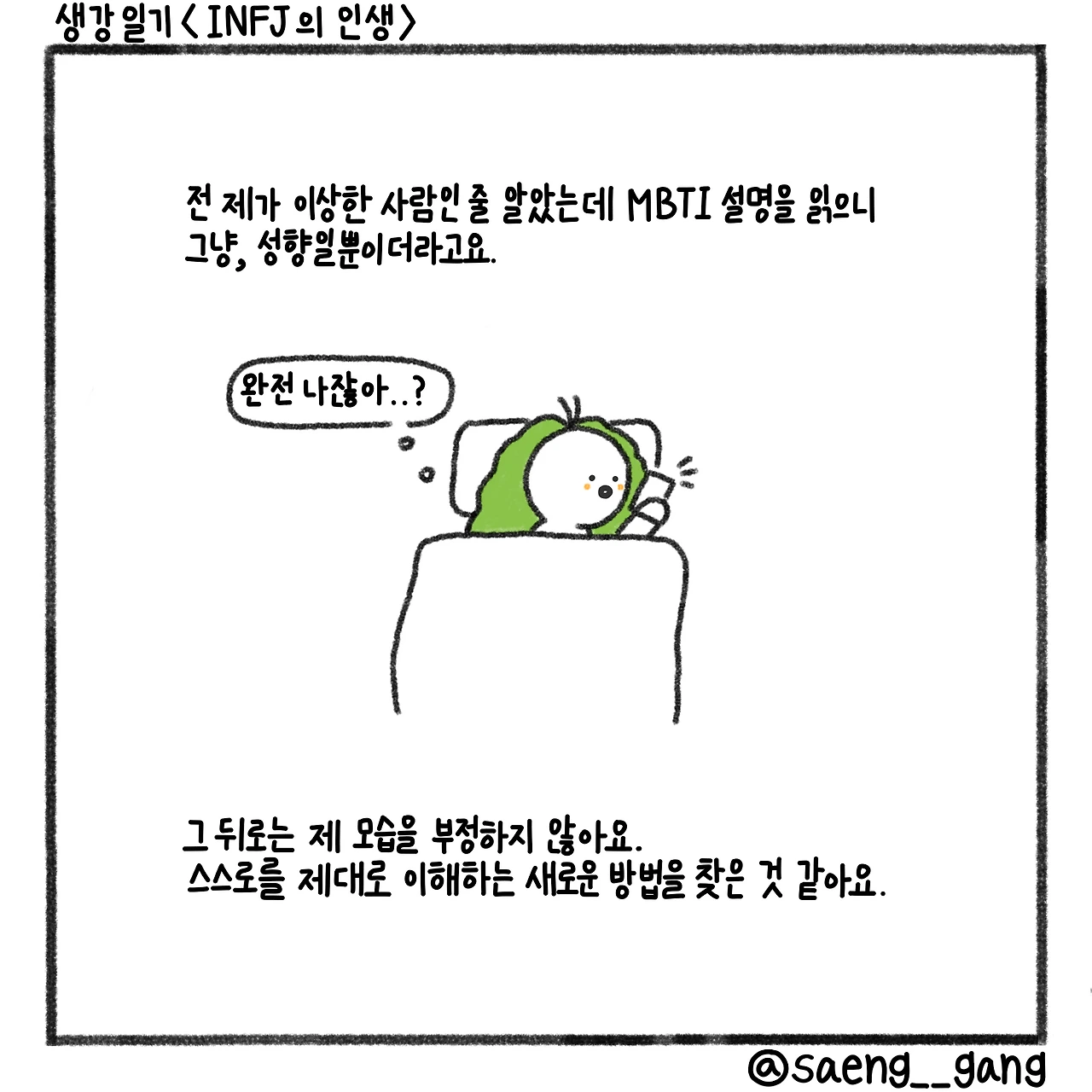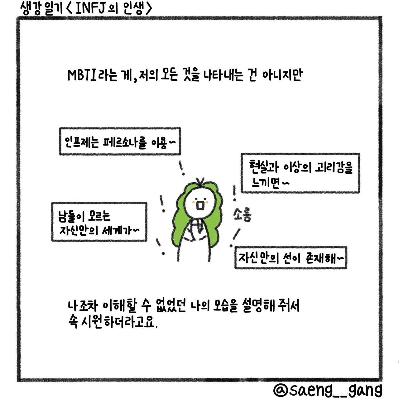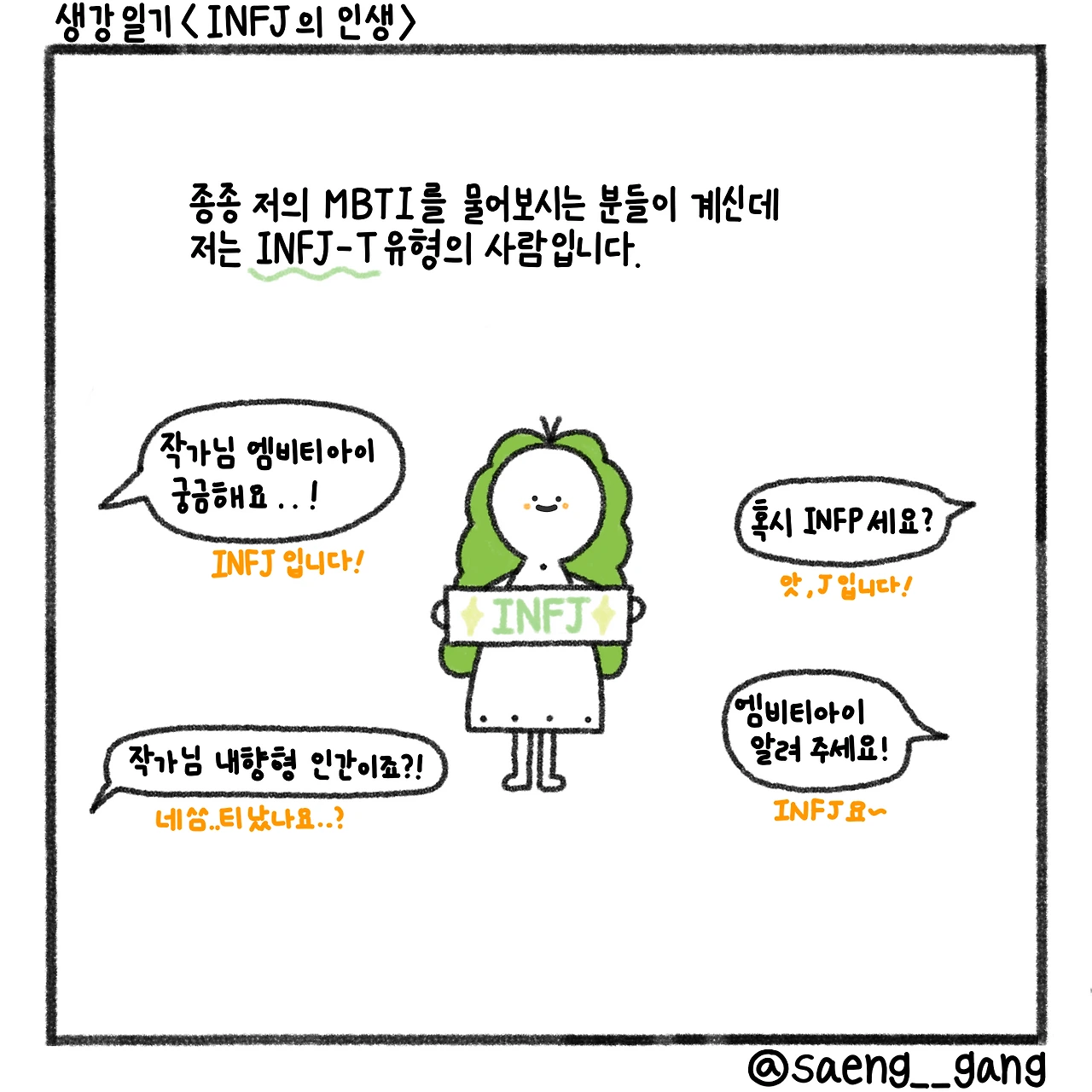 심리 테스트를 좋아하던 아이는 커서 엠비티아이를 즐기는 사람이 되었어요. 저는 인프제라고 불리는 유형의 사람입니다.
