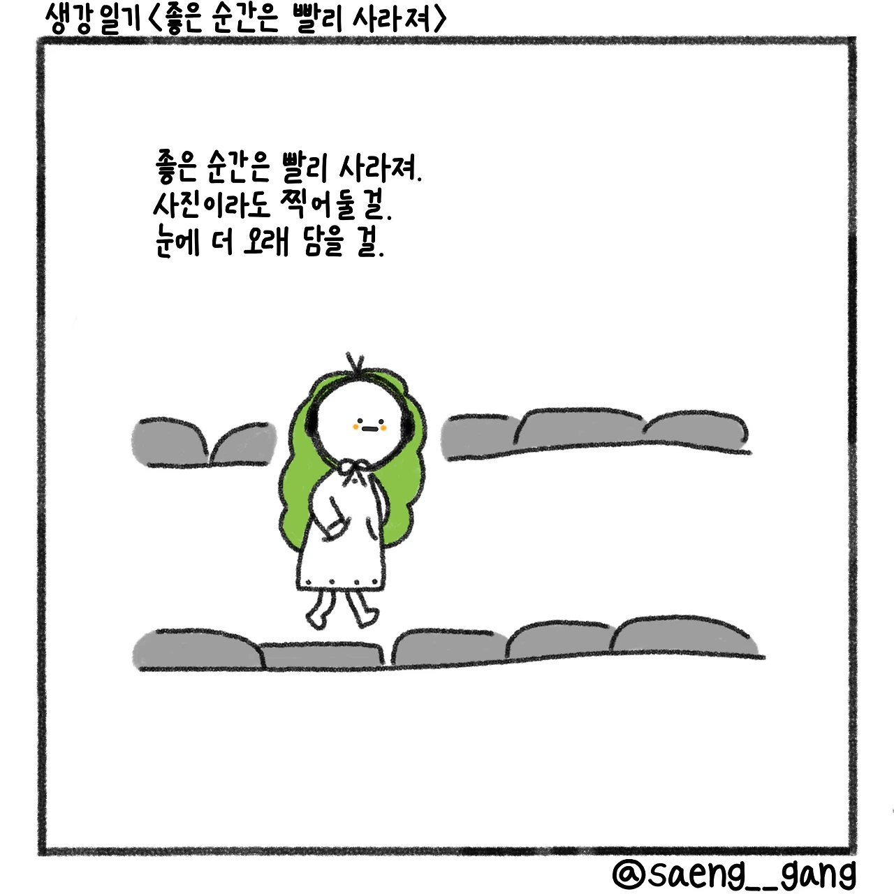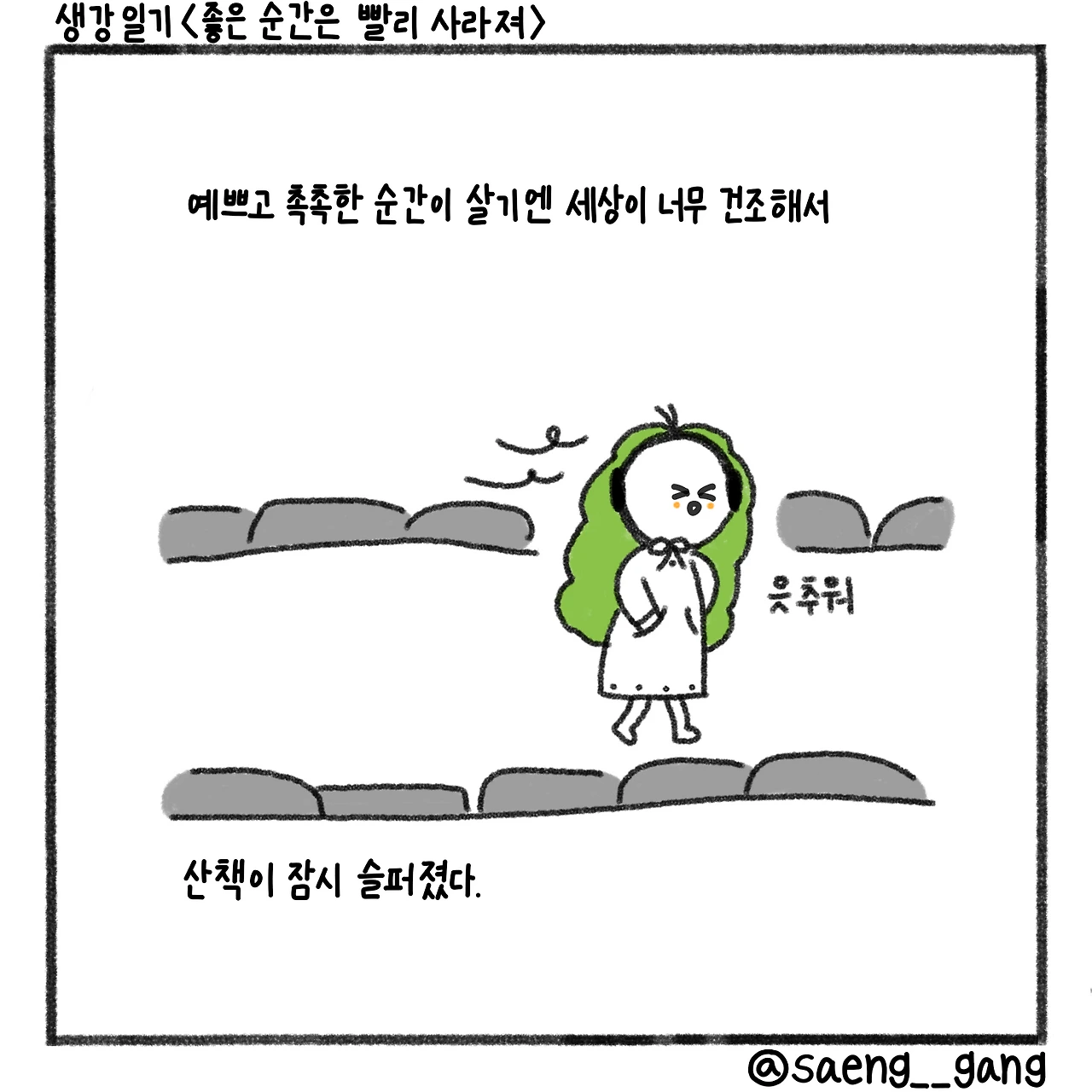 바람이 불었다. 산책이 잠시 슬퍼졌고, 좋은 순간을 붙잡고 싶어 졌다.