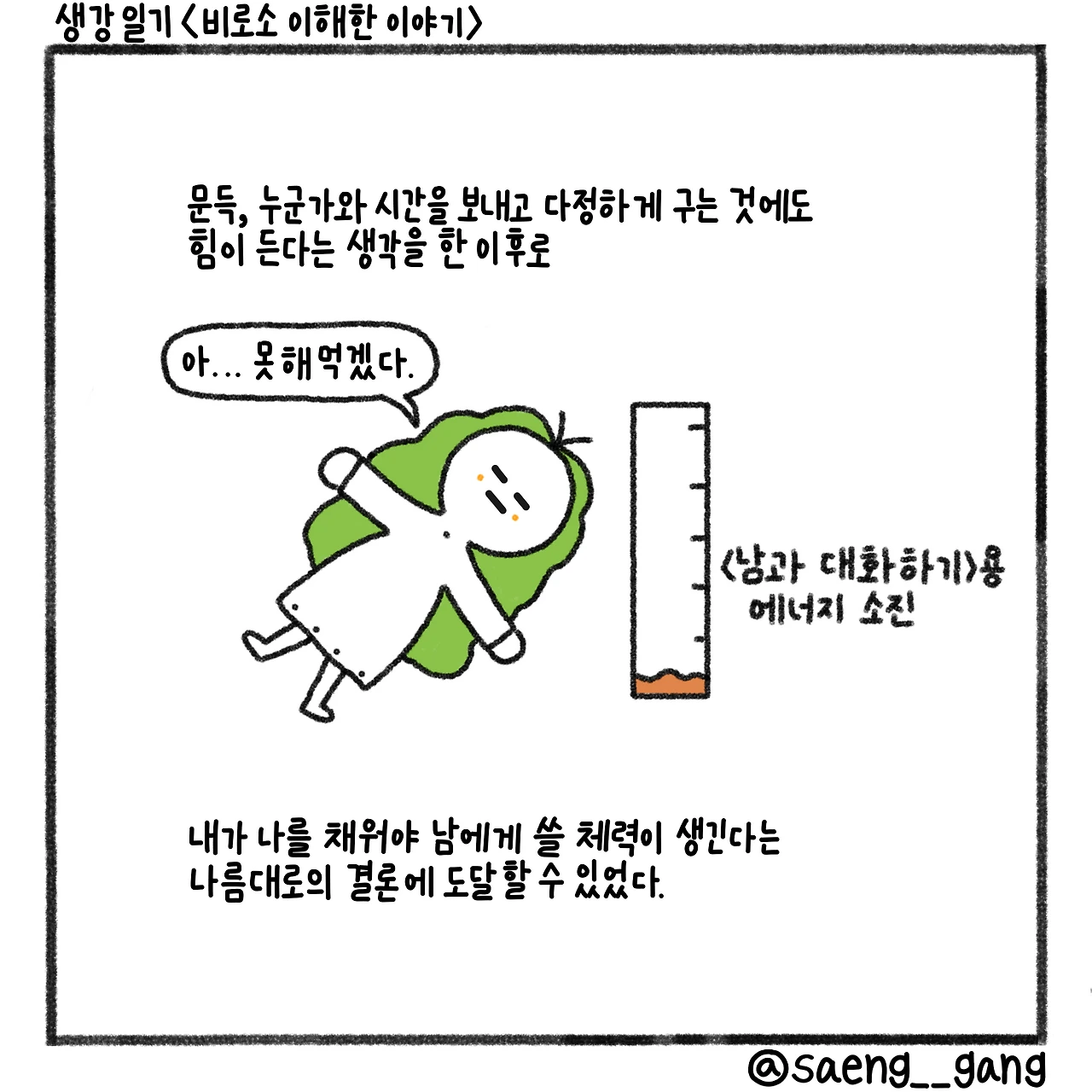 사람과 대화하는 것에도 힘이 든다는 생각을 한 이후로 힘의 이동과 그것이 가져오는 결과물을 곰곰이 생각하게 되었다. 그리하여 도달한 결론은 내가 나를 먼저 사랑해야 한다는 것. 그것이 사랑의 첫 번째 단계라는 것.