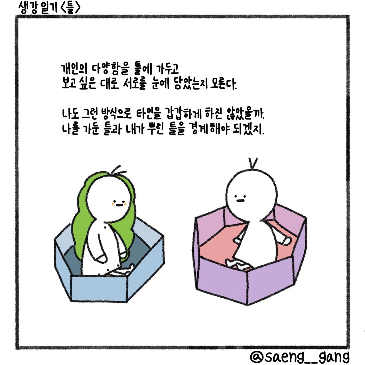 멋대로 나를 틀에 가두는 사람도 없었으면 좋겠다.