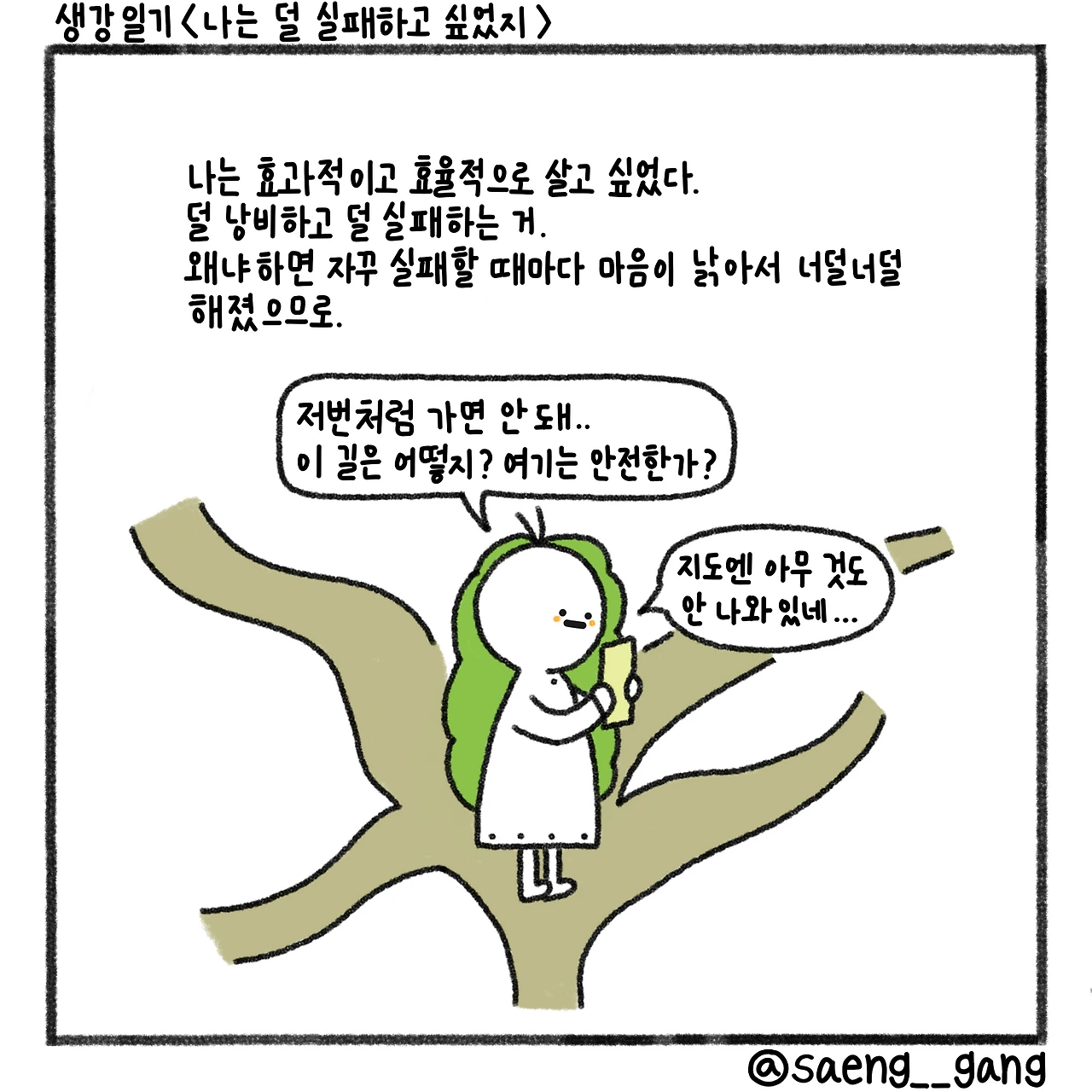 효과적이거나 효율적인 삶은 어디에도 없을 거야. 그러고 싶다는 마음은 존재하지만, 그런 삶은 존재하지 않지. 그러니 오늘에 집중해야지.