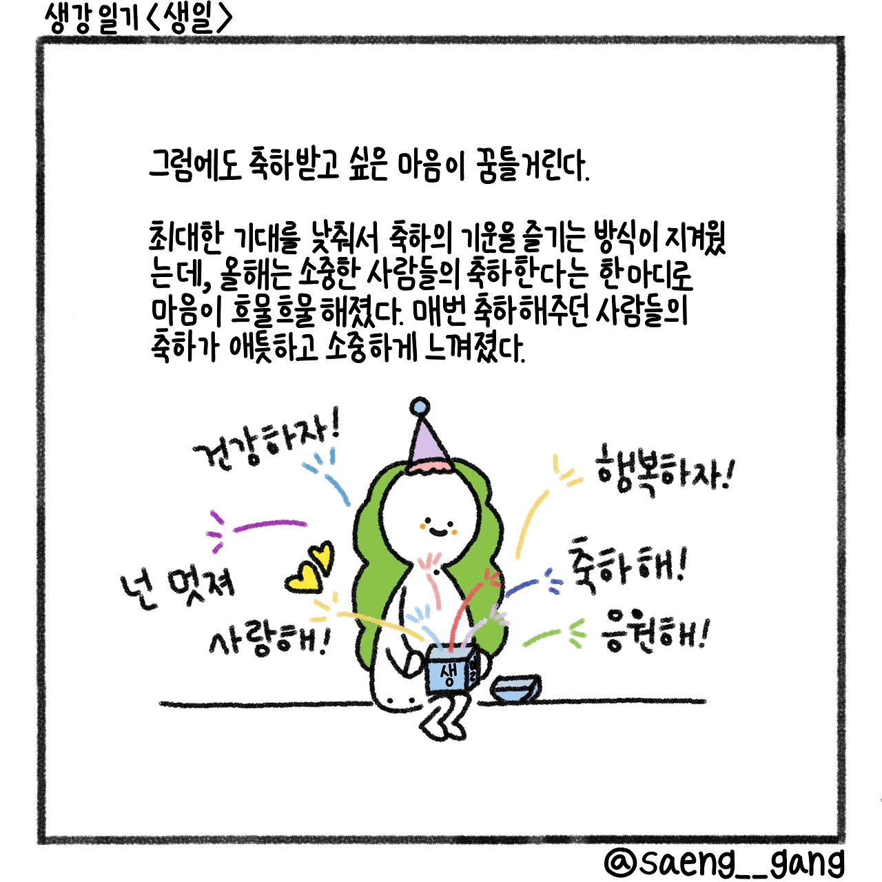 생일 축하해, 나야. 사랑을 먹고 자라자.