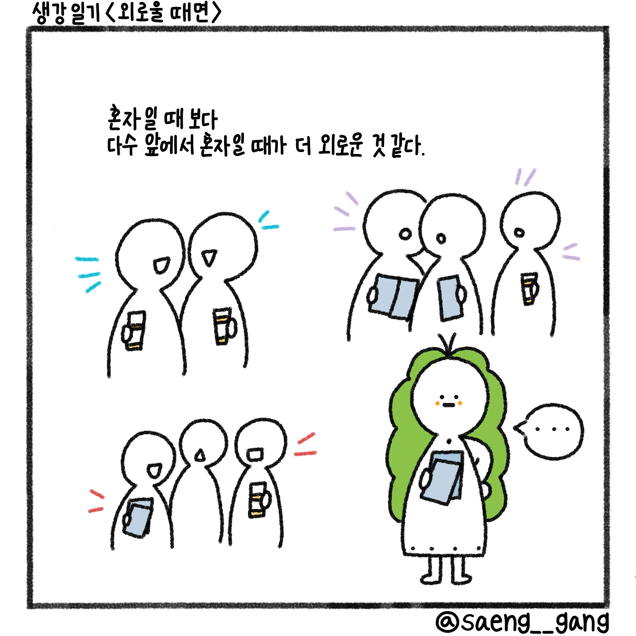 혼자일 때보다 다수 앞에서 혼자인 게 더 외롭다. 일기의 첫 문장으로 이것을 썼다. 혼자는 혼자여서 좋은데 여러 사람들 속에서 홀로 남겨진 느낌이 들면 잊었던 외로움이 예고 없이 날 찌른다. 외롭기 위해서 이 자리에 나온 게 아닌데, 자꾸 외로워진다.