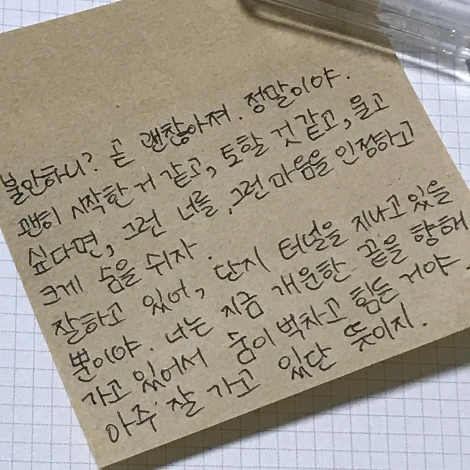 어느 날의 내가 불안해도 덜 불안하도록, 쪽지를 썼다.