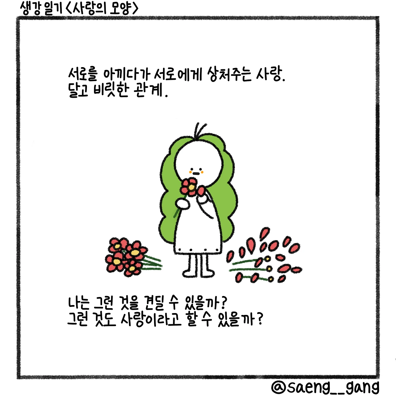사탕을 먹다가 혀를 베였다. 달달함 속에 날카로운 면이 드러난다. 혀끝이 아릿했다. 나는 어느새 사랑의 모양을 생각하고 있었다.