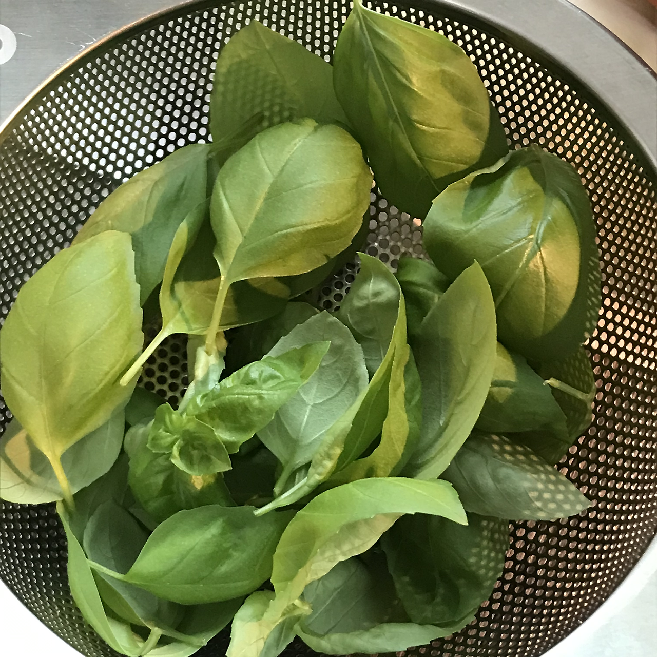 1. 바질을 물에 씻어 키친타월로 물기를 닦는다.