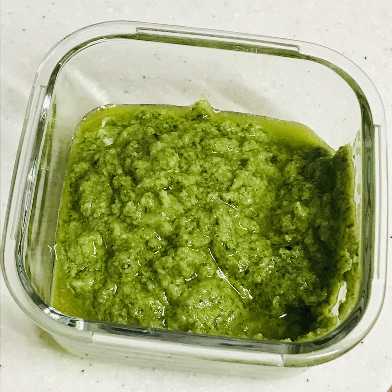 7. 믹서기에서 꺼내 유리그릇에 담으면 바질 페스토 완성!