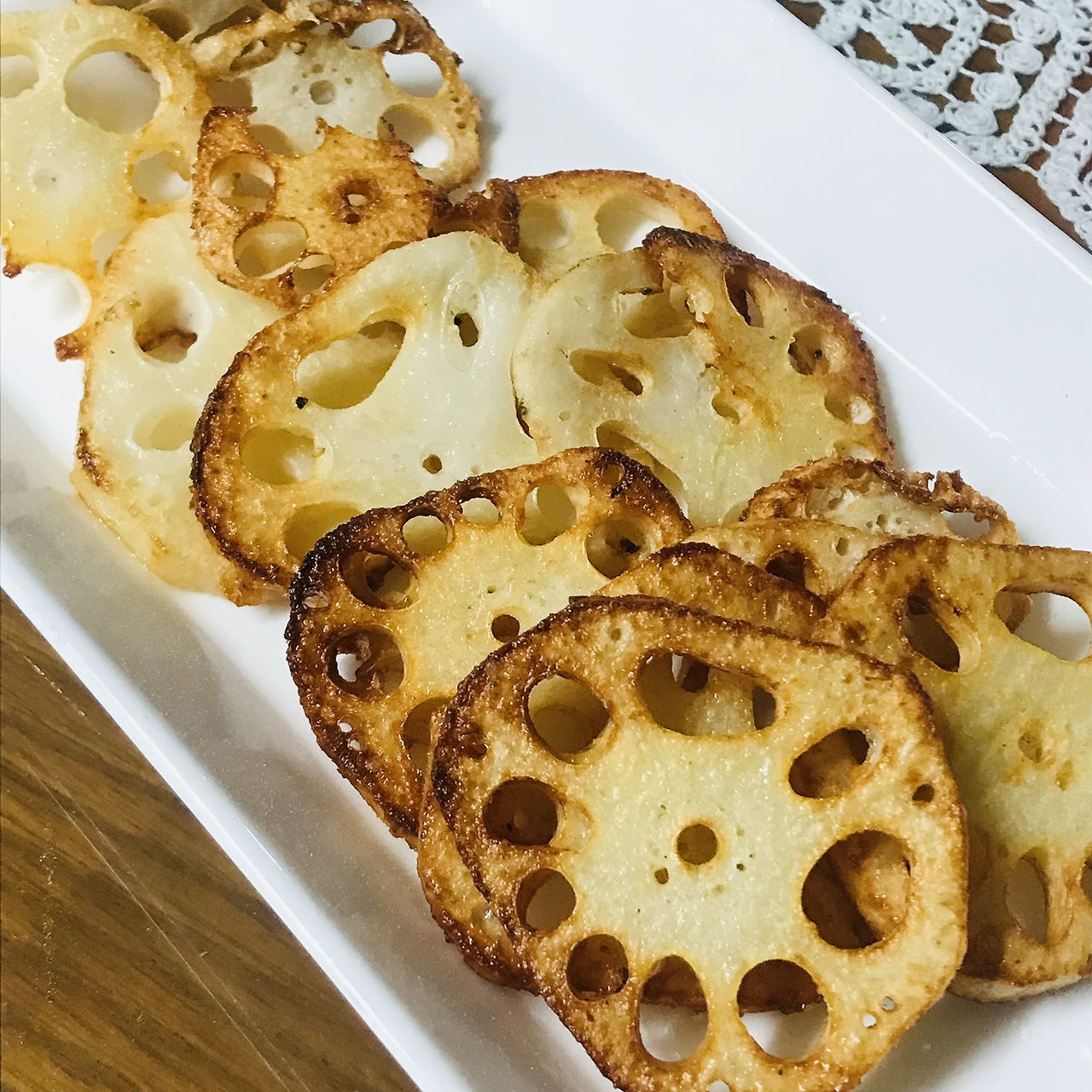 입이 심심하거나 주전부리가 필요하다면, 튀긴 음식을 먹고 싶은데 부담스럽지 않은 음식이길 바란다면, 연근 튀김 한 접시 어떨까?