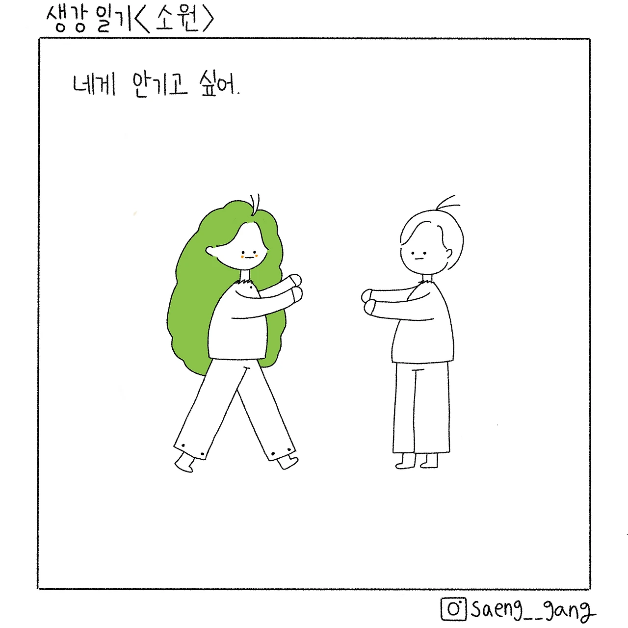 네게 안기고 싶어. 널 조준하고 폭발적으로 달려가서 움푹 안기고 싶어. 내가 조잘거리면 넌 대답해 주면 돼.