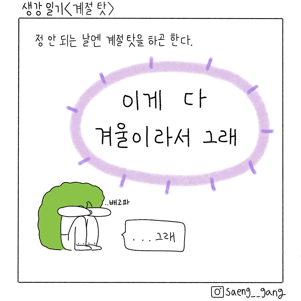 나는 봄과 가을이 좋다. 선선하니 자유로운 바람이 좋아. 나는 여름과 겨울에 취약한 사람인데 이번엔 겨울이 더 힘겨웠어. 그래서 나는 계절 탓을 했지. 답이 없는 문제 사이를 맴돌며 나를 탓할 건 다 했는데 아무리 탓을 찾아도 답은 되지 않는 거야. 그래서 그냥 계절 탓을 했어. 이게 다 겨울이라서 그래. 봄이 오면 잘할 거야. 너무 추워서 그래. 움직이지 못해서 그래.