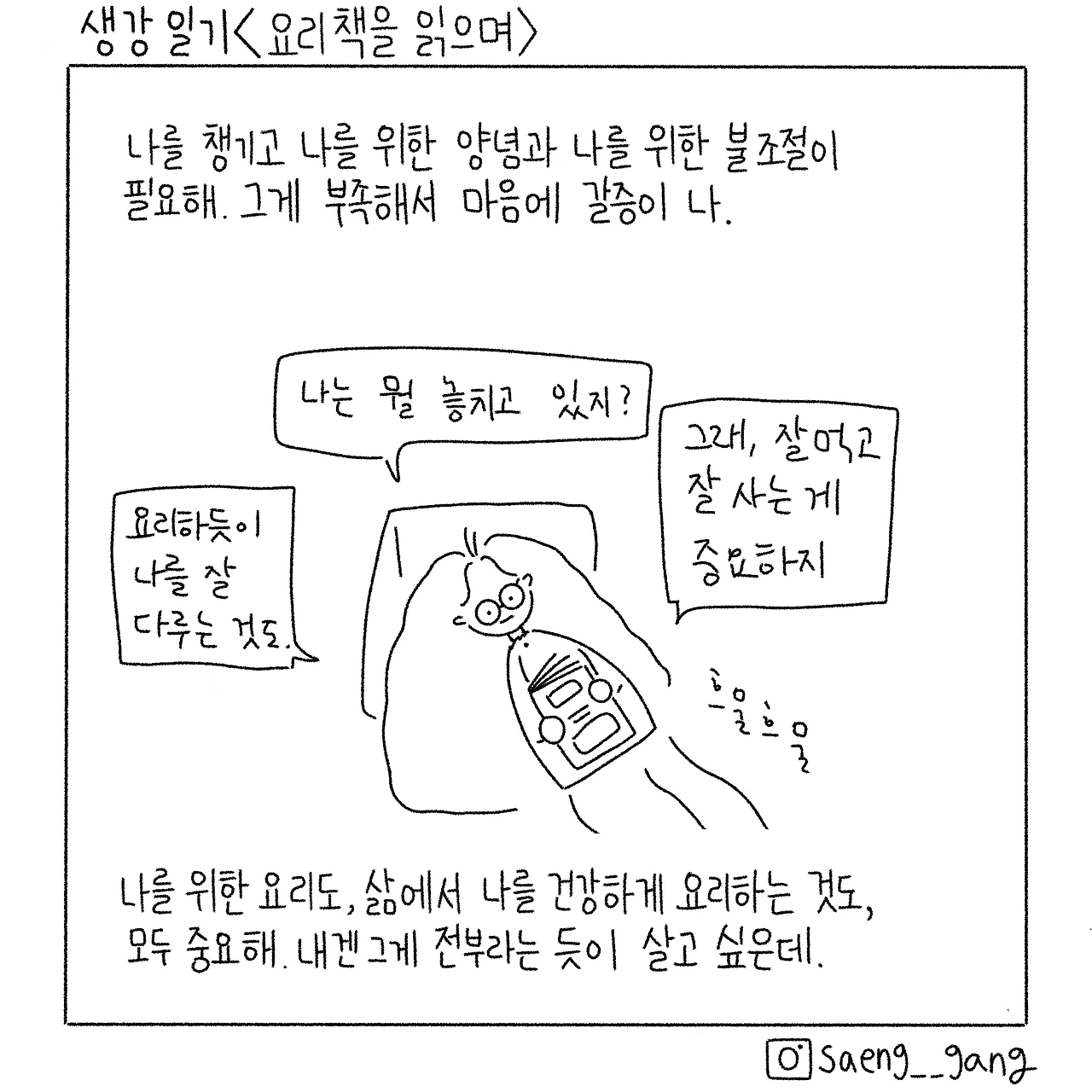 눈으로 읽은 평화를 온몸으로 느끼고 싶을 땐, 정말로 실천해야 했다. 그러니 나는 내게 밥을 해 먹이고 양념처럼 매력적인 방식으로 말하고 불 조절처럼 은은하다가도 솟아오르는 열망을 잘 조절해야 한다. 나를 잘 요리해야 한다는 말이다. 그래야 부서진 마음이 단단하게 붙을 것 같아.