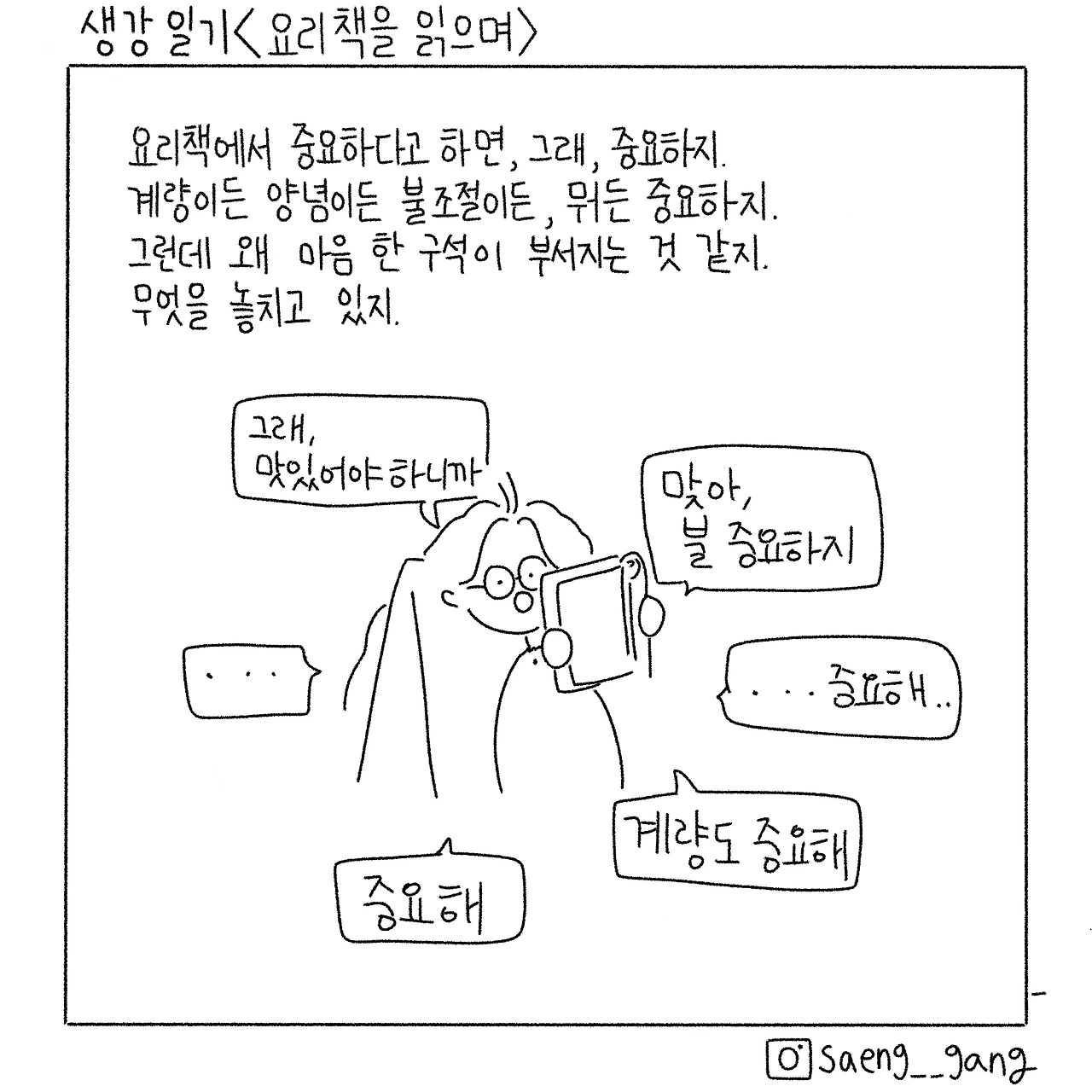 그게 내 삶의 전부라는 듯이 살고 싶은데. 요리책처럼 중요한 일에만 몰두해서 중요한 걸 중요하게 만들고 싶은데.