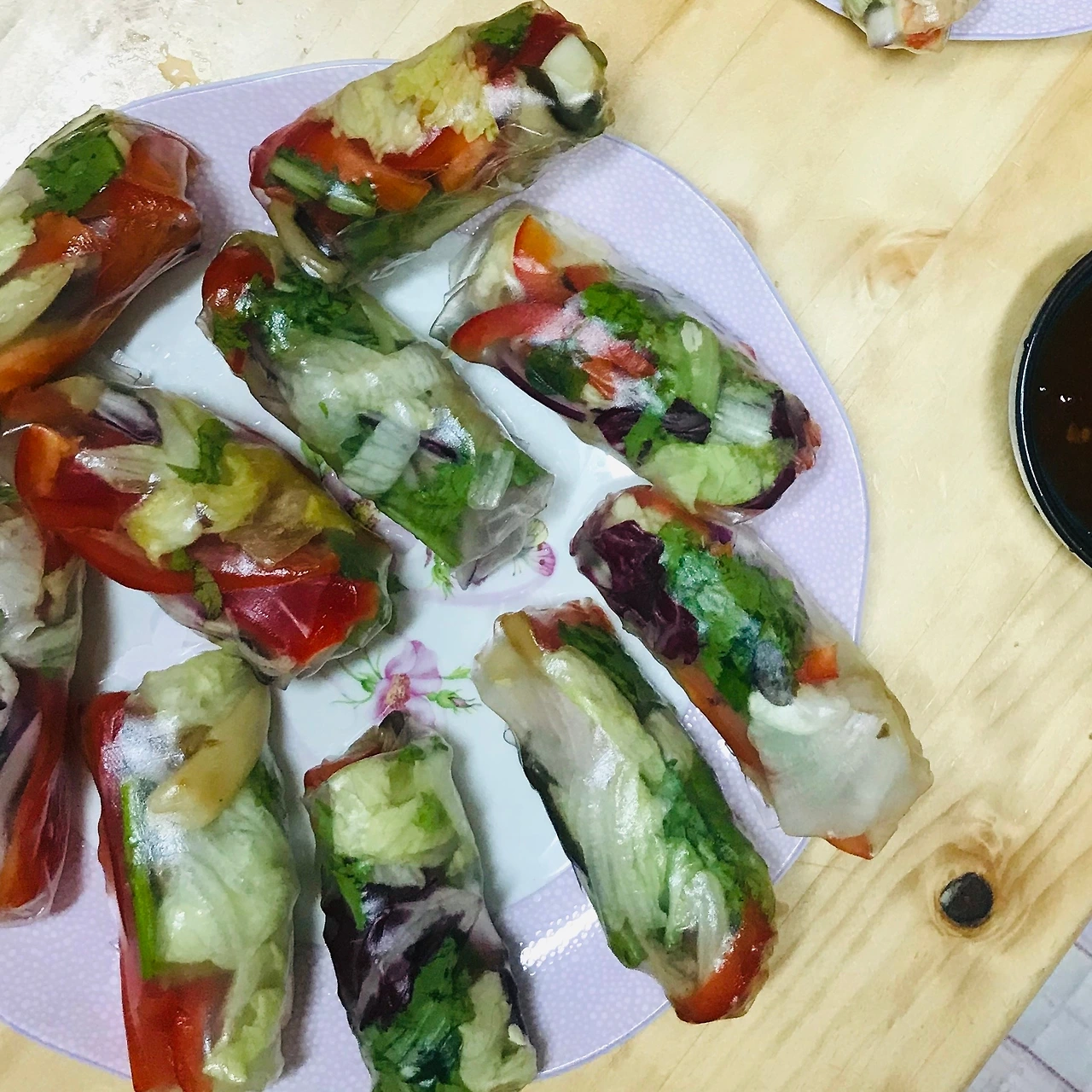 라이스페이퍼의 쫄깃한 식감과 아삭한 재료들이 만나 상쾌한 한 끼가 완성되었다. 눈에 보이는 재료들이 아주 화려해서 보는 재미까지 있는 월남쌈�