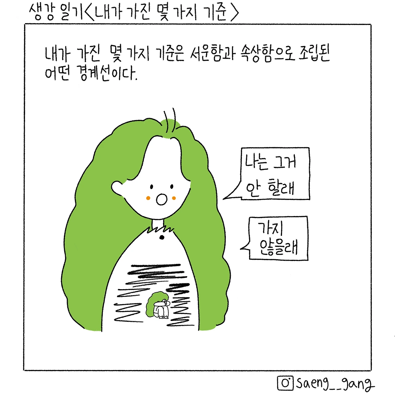 내가 가진 몇 가지 기준은 서운함과 속상함이 만든 경계다. 싫다고 말했는데 지속적으로 싫은 것을 내미는 사람, 내 입을 막는 사람, 내 입을 벌려서 듣고 싶은 말을 억지로 내뱉게 하는 사람. 그런 이들은 만나고 마음이 극한의 상황에 다다를 때 어떤 경계를 세워야 하는지 생각했다.
