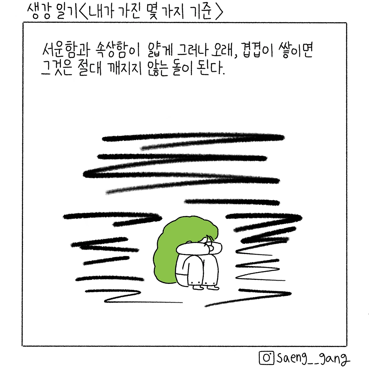 쪼개지지 않는 돌이 마음에 있어. 하루치의 서운함을, 속상함을 얇게 저며 한 겹씩 쌓다 보니 녹지도 않고 떨어지지도 않고 사라지지 않는 돌이 되었어.