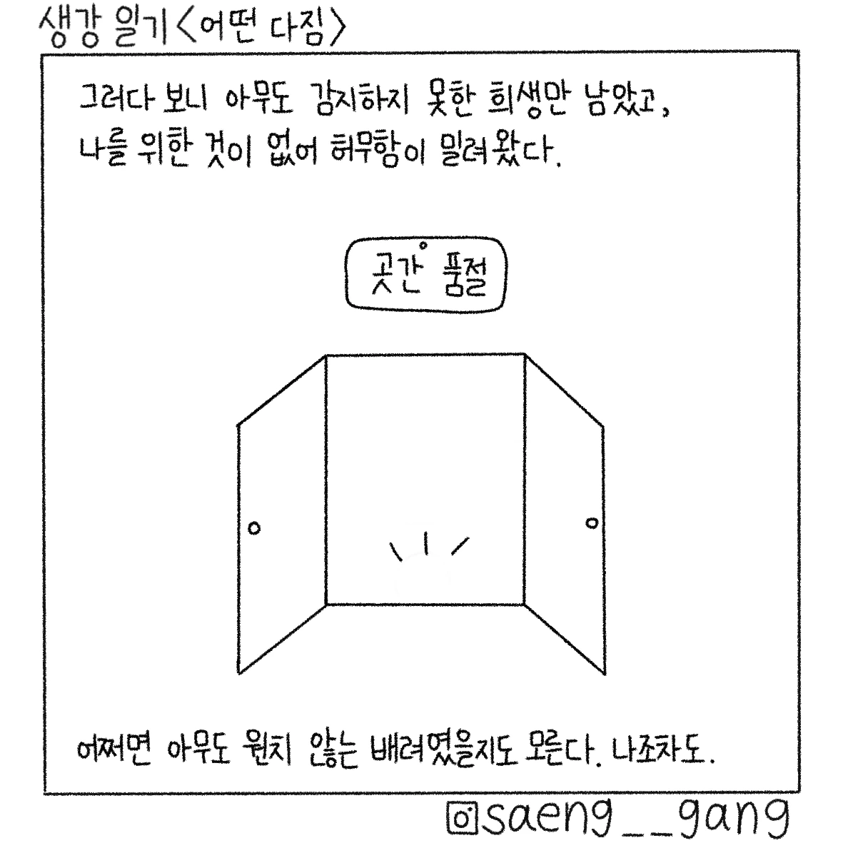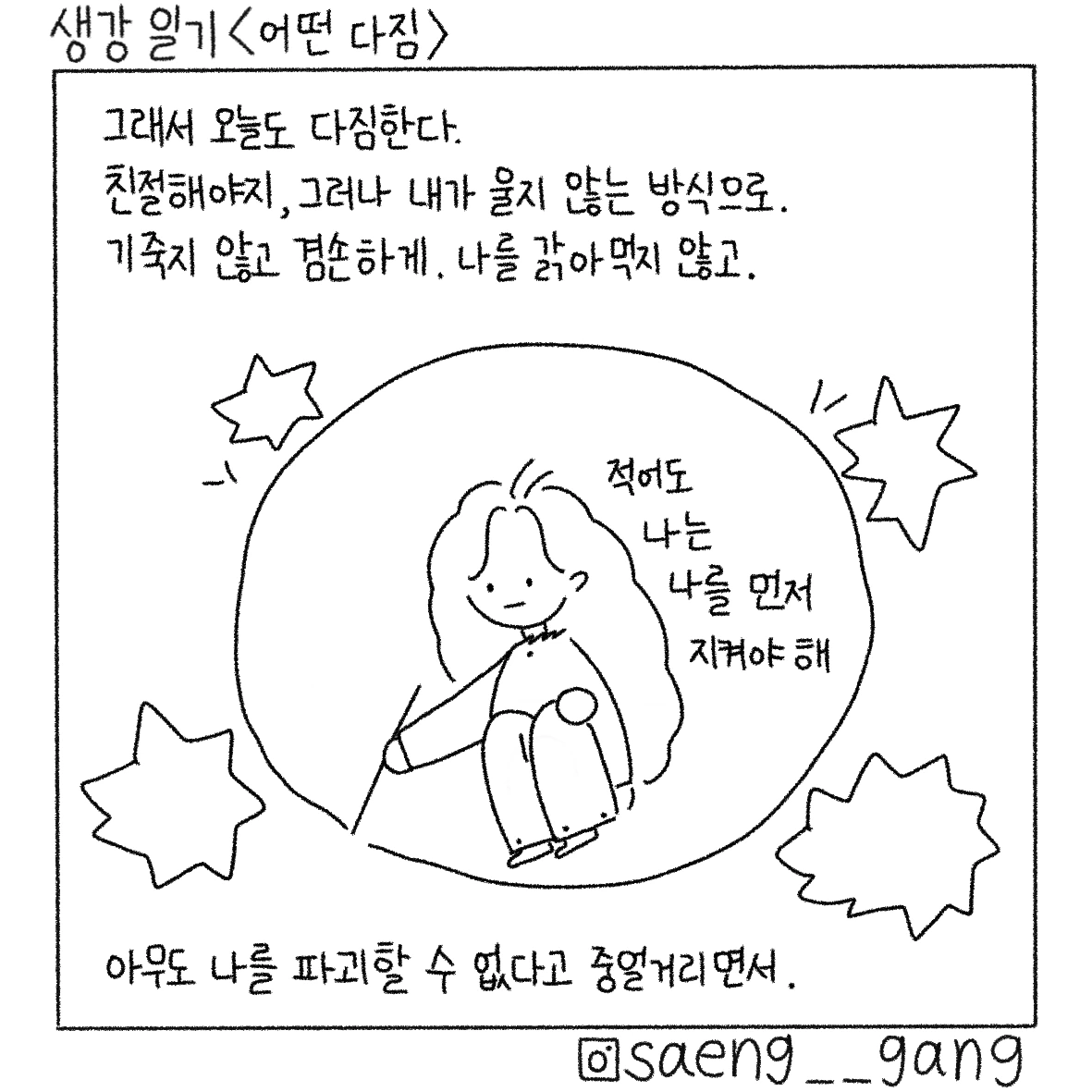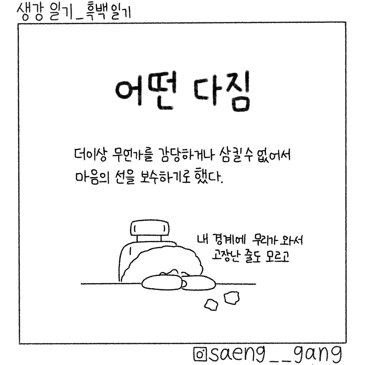 선을 보수하자. 건강하고 튼튼하게. 내가 나를 지켜야 안정감을 얻은 내가 그 힘으로 다른 이에게 더 좋은 말을 할 수 있을 것이다.