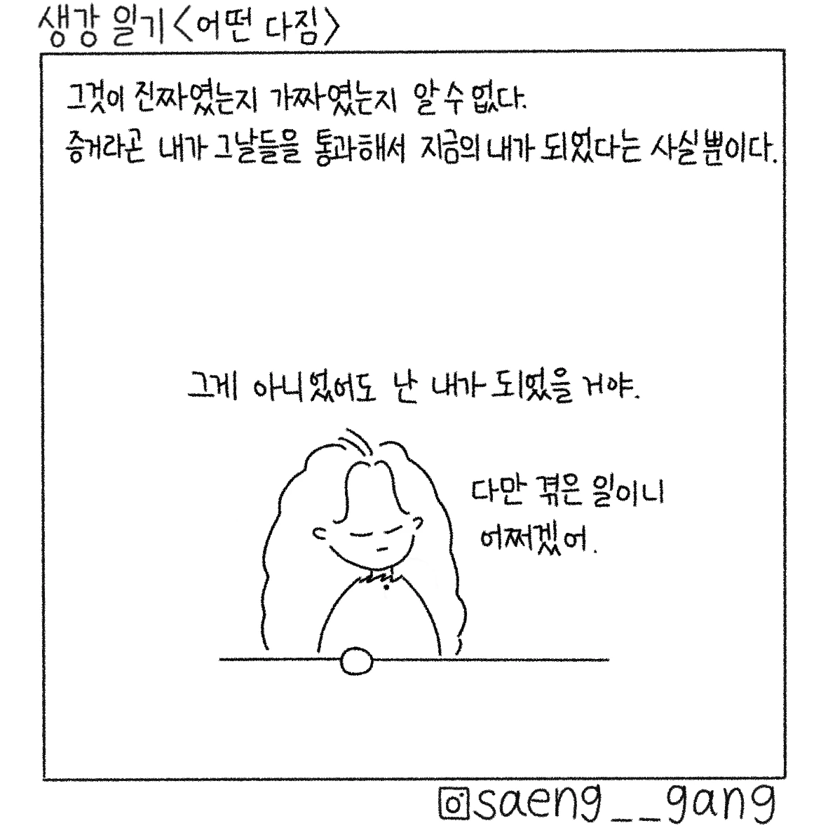 마음의 선을 보수하기 위해 과거를 끄집어내는 일, 버겁지만 꼭 필요한 과정이다. 그러나 모든 과거를 기다 아니다 하며 나눌 수 없어서 마음이 아팠던 말들은 그냥 찢어버리기로 했다.