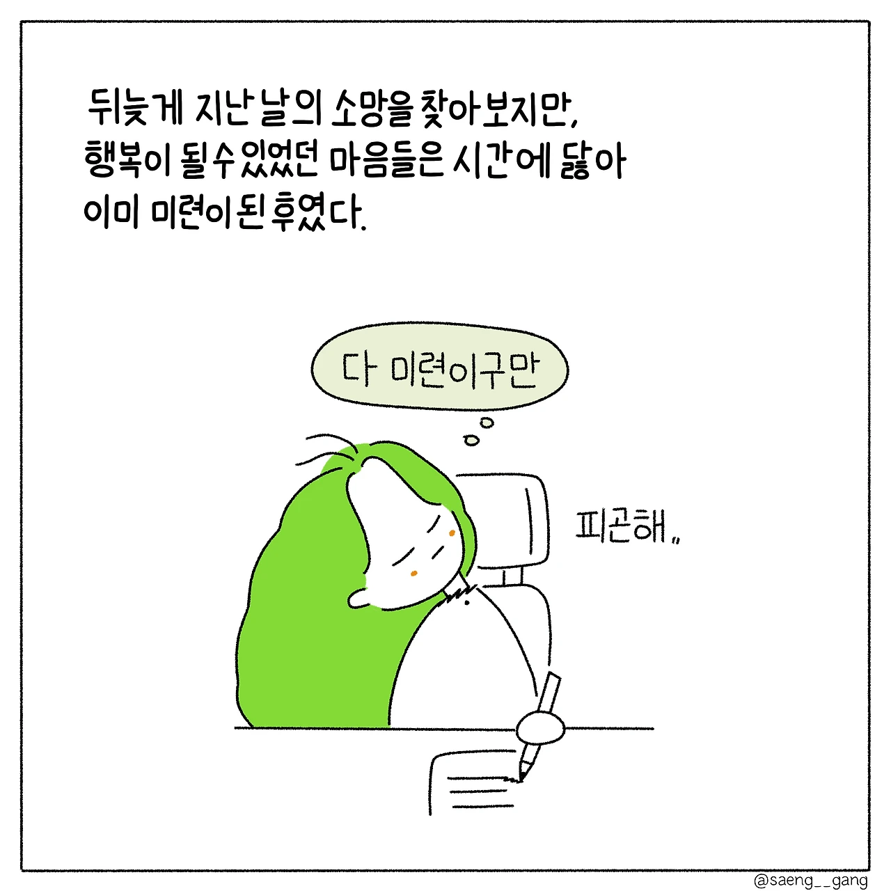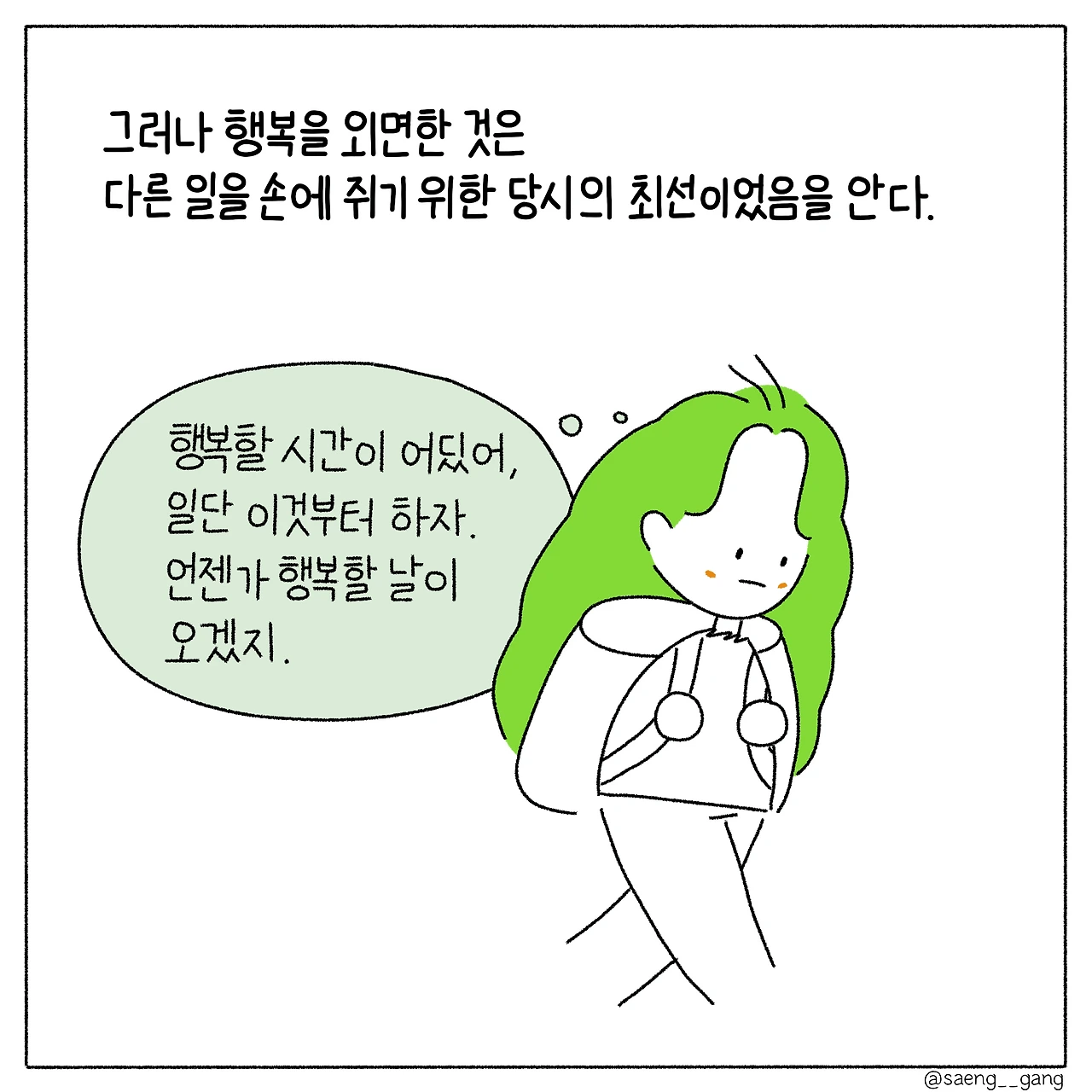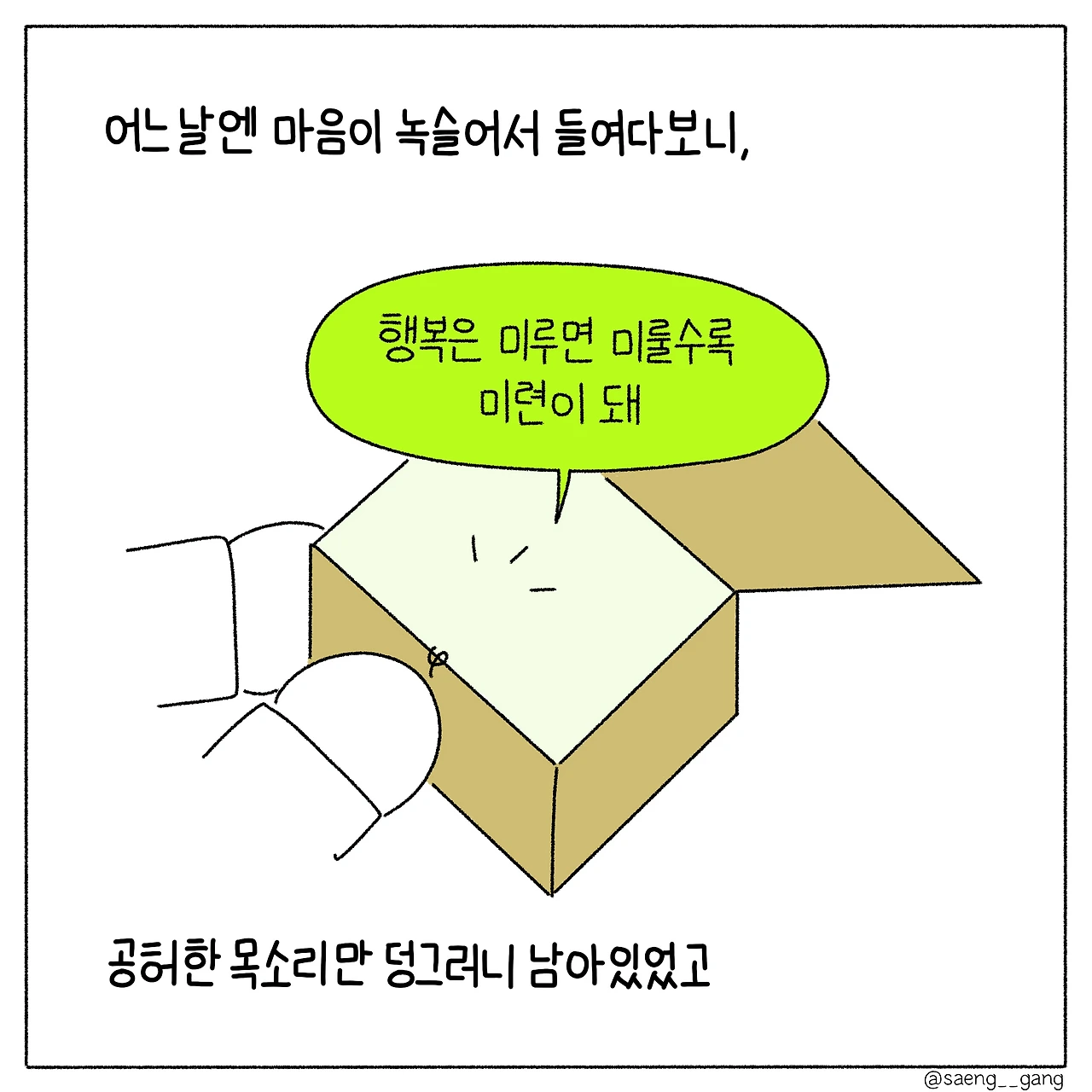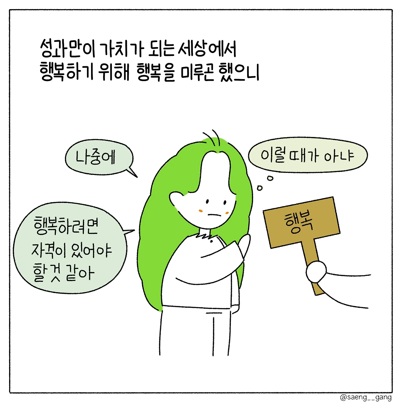 행복은 미루면 미룰수록 미련이 돼.