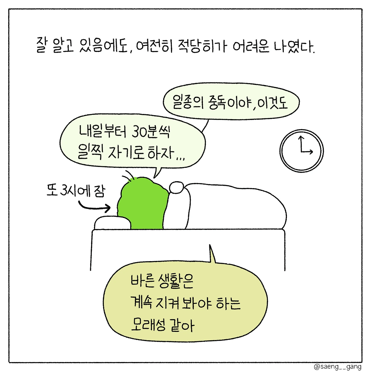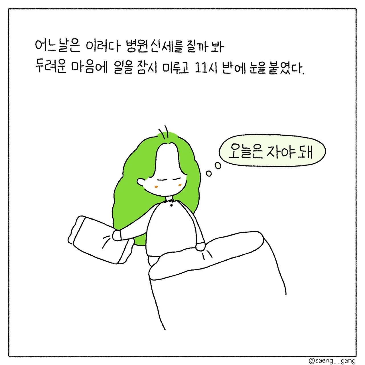 다짐이 무색하게 새벽에 잠드는 날이 있지만, 오늘만은 오전이 아닌 오후에 잠들 수 있기를!