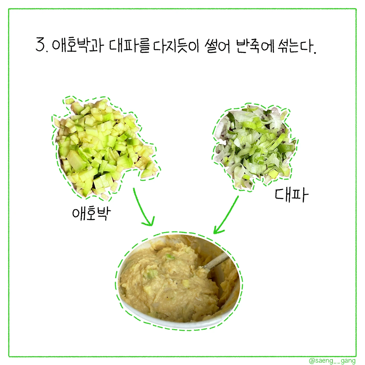 3. 애호박과 대파를 다지듯이 썰고, 반죽에 넣고 섞는다.