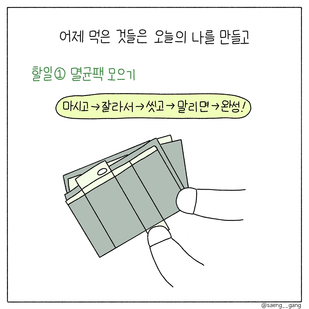 아몬드유를 먹고 멸균팩을 씻어 말리는 마음. 병뚜껑을 하나씩 모으는 손. 장바구니를 들고 가볍게 나가는 발걸음. 두유라떼를 들이키는 몸. 귀찮다고 말하면서 수세미에 물을 적시는 마음.