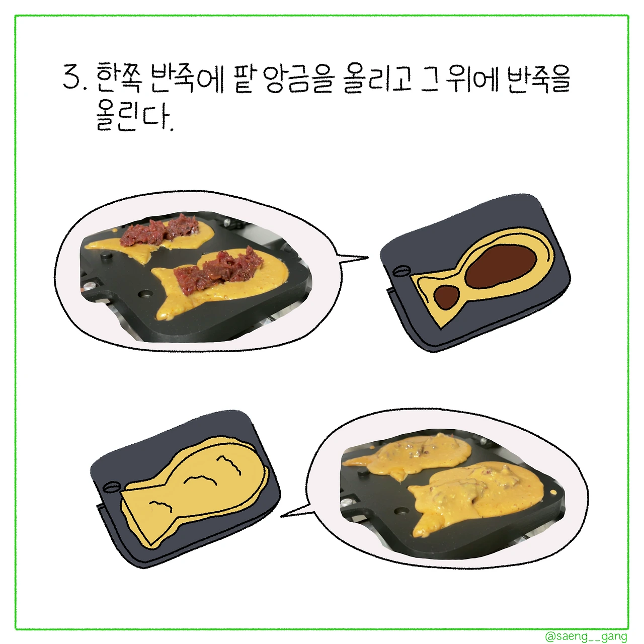 3. 반죽의 겉이 구워지면 팥앙금을 가득 넣어준다.
