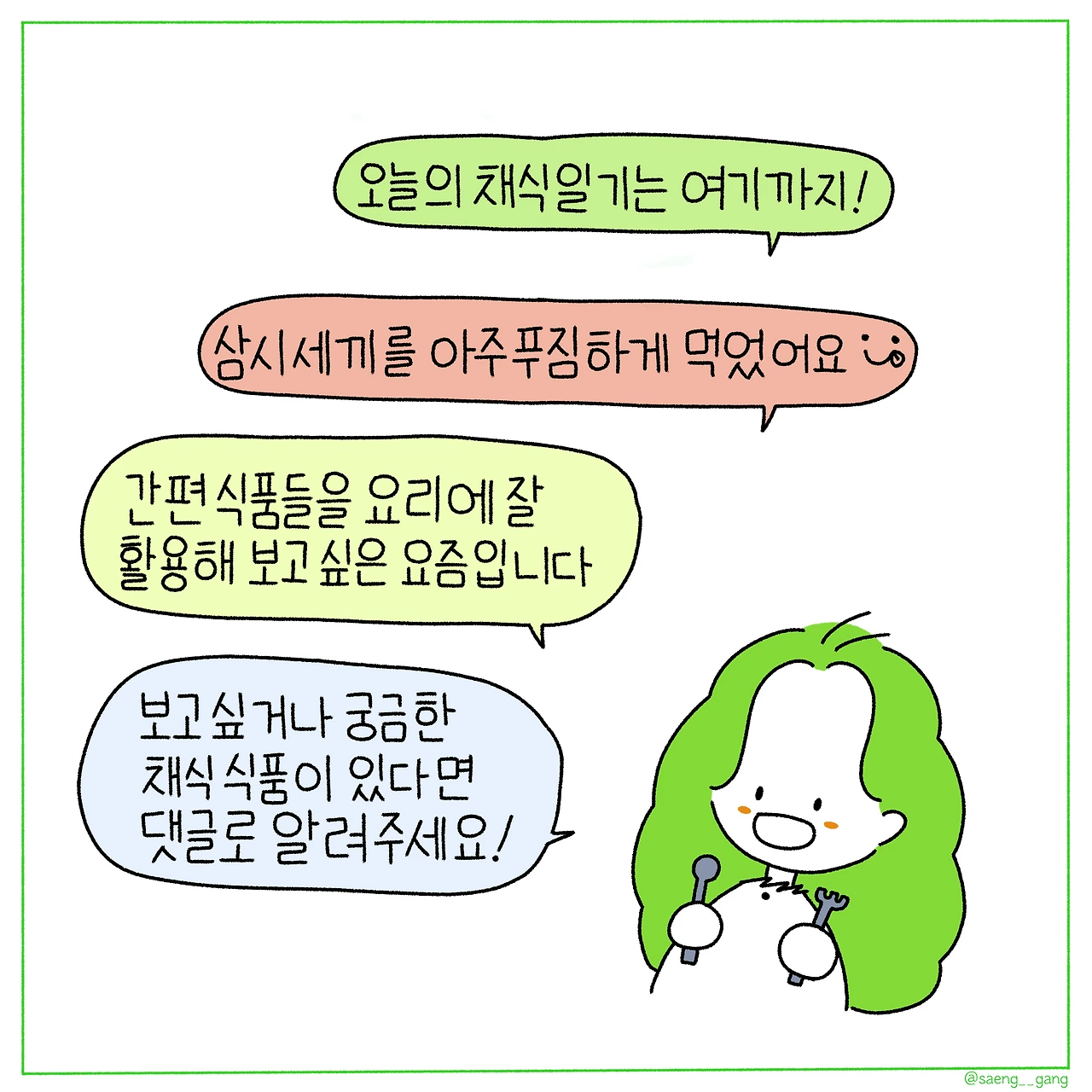 보고 싶거나 궁금한 채식 식품, 채식일기가 있다면 댓글로 마구마구 적어주세요 :)