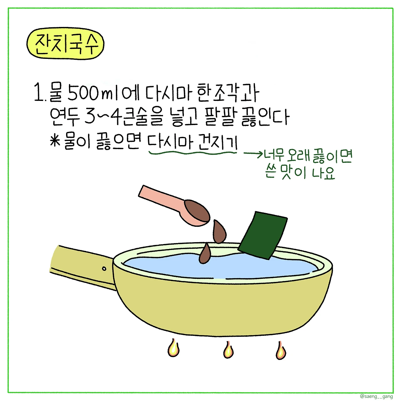 1. 물에 다시마, 연두 3-4 큰술을 넣고 끓인다