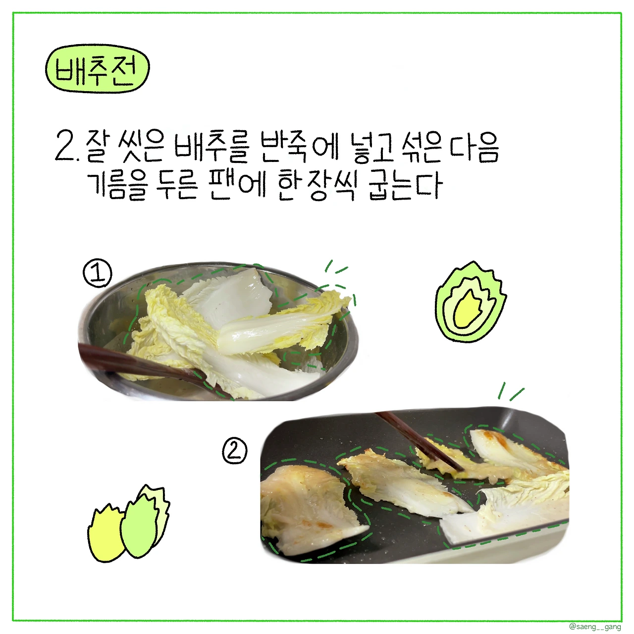 2. 반죽에 배추를 넣고 잘 묻힌 다음