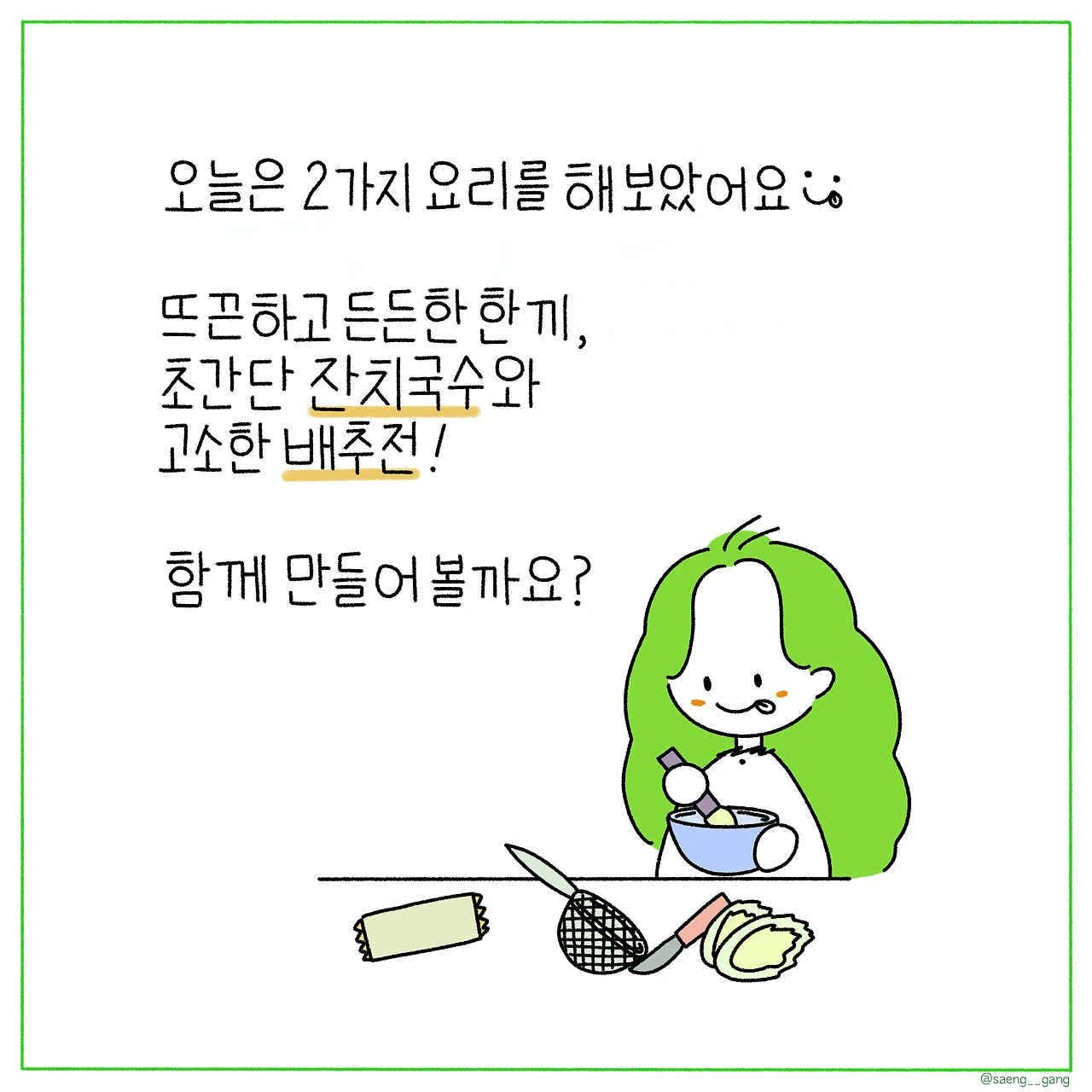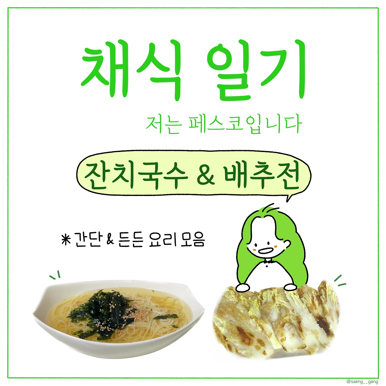 야심한 시간에 뜨끈한 국수 요리와 바삭한 배추전을 올리는 저를 용서하세요,, 사실 저도 배고파졌어요