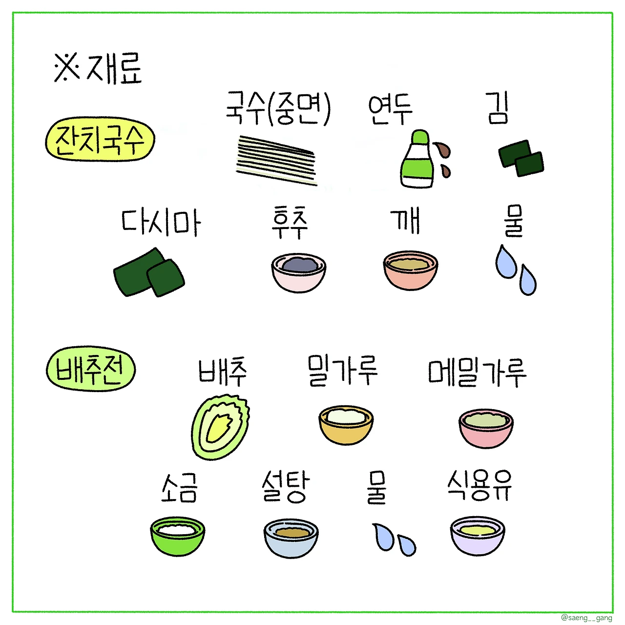 국수 / 연두 / 김 / 다시마 / 후추 / 깨 / 물