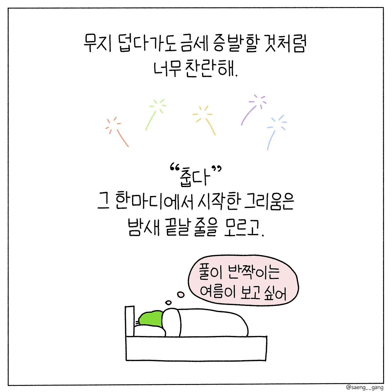 아직 손발이 시린 사람의 여름 이야기란, 대체로 덥고 습하지만 찬란했다고 울부짖는 것이다.