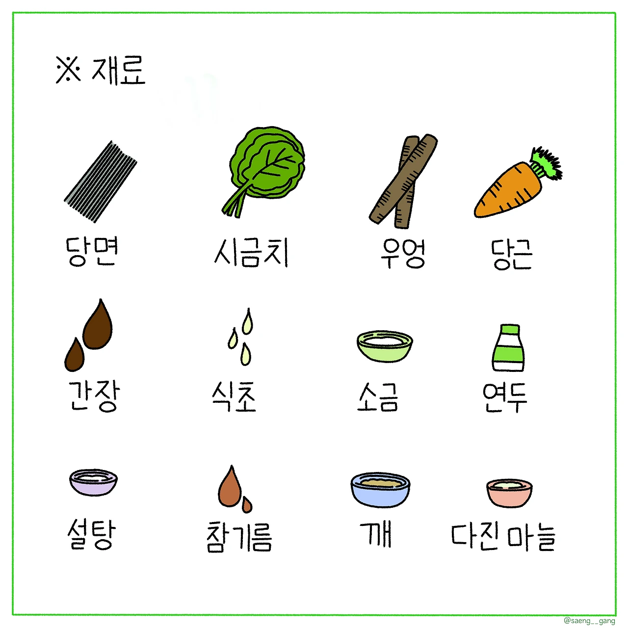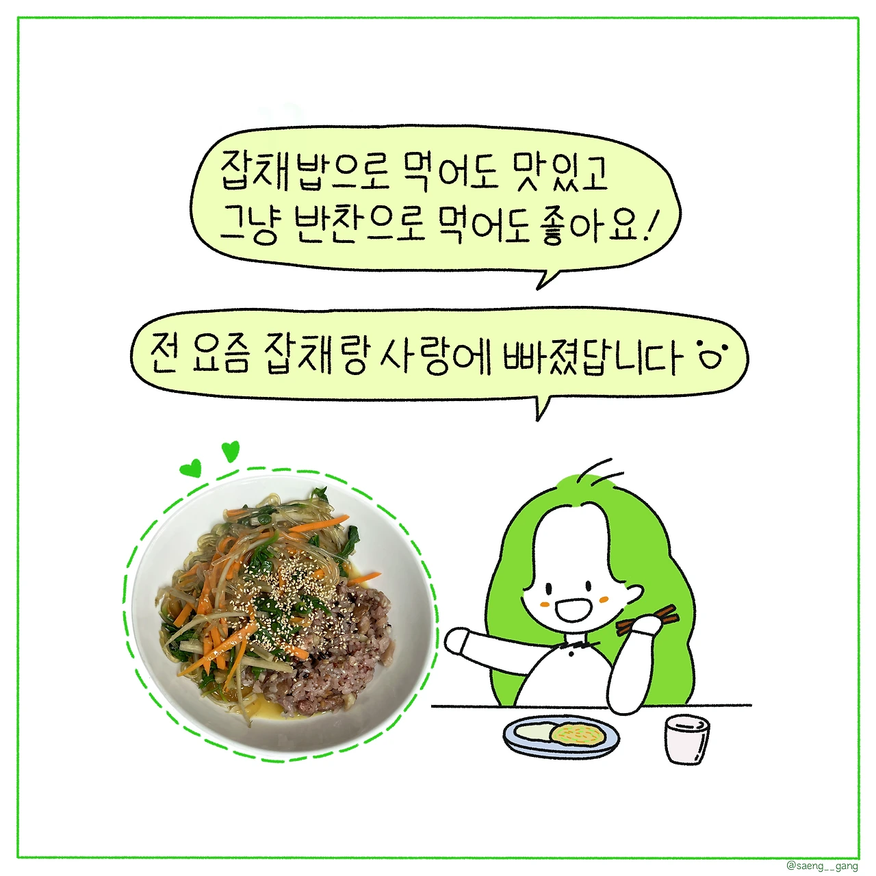 요즘은 엄마의 잡채에 푹 빠져있다. 잡채밥으로 먹어도 맛있고 반찬으로 먹어도 맛있어서 매번 빠짐없이 먹는 중인데, 어느 날은 엄마의 레시피를 따라 하고 싶어서 옆에 꼭 붙어 요리를 배웠다.
