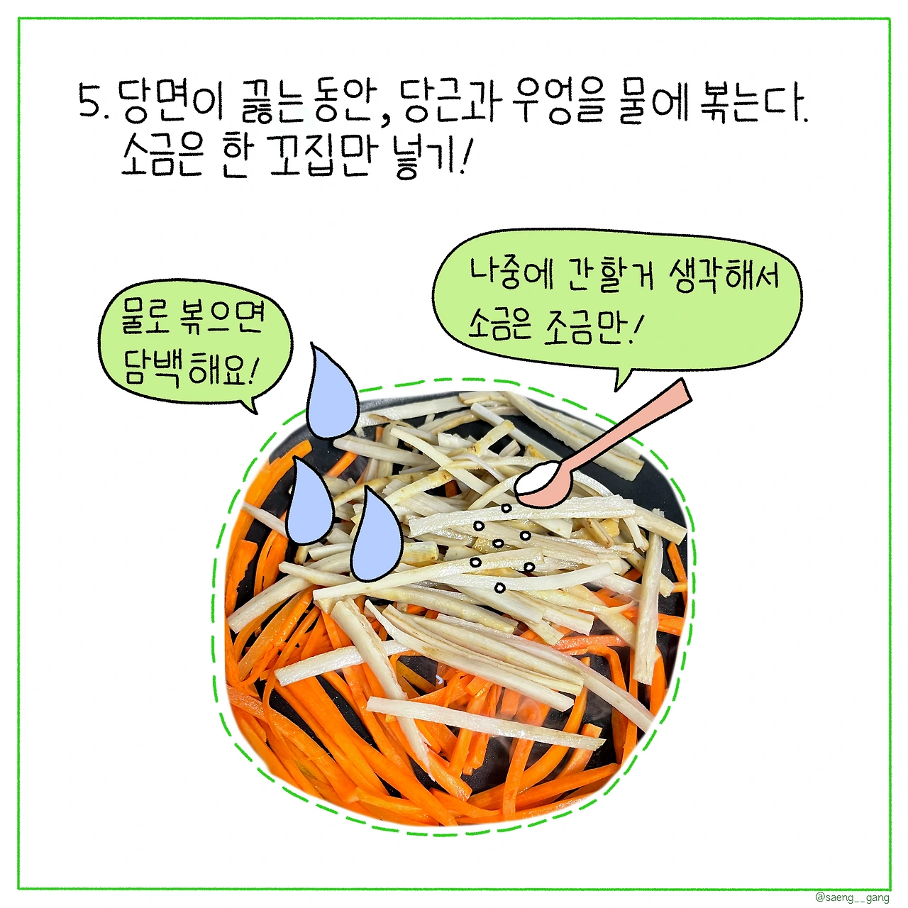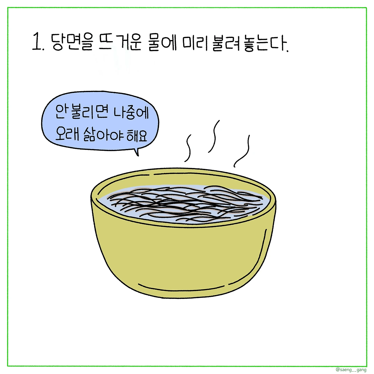 1. 뜨거운 물에 당면을 미리 불려놓고
