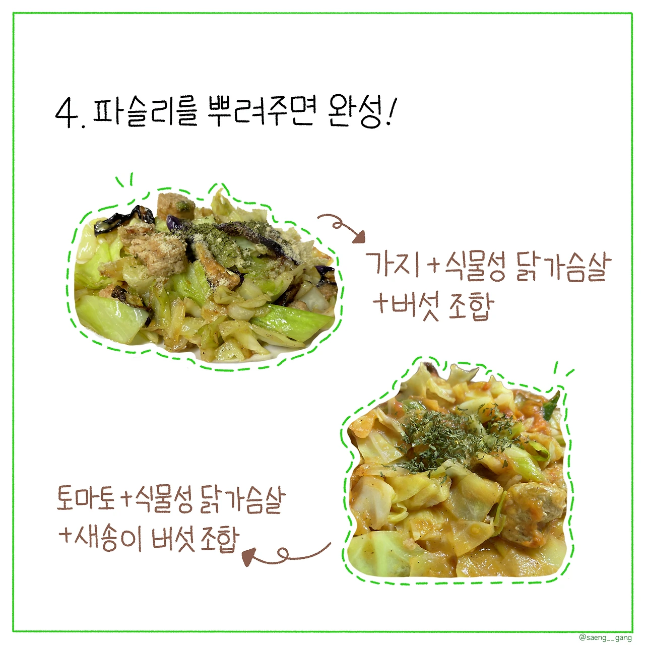 4. 마지막에 파슬리를 뿌려주면 푸짐한 양배추 볶음 완성!
