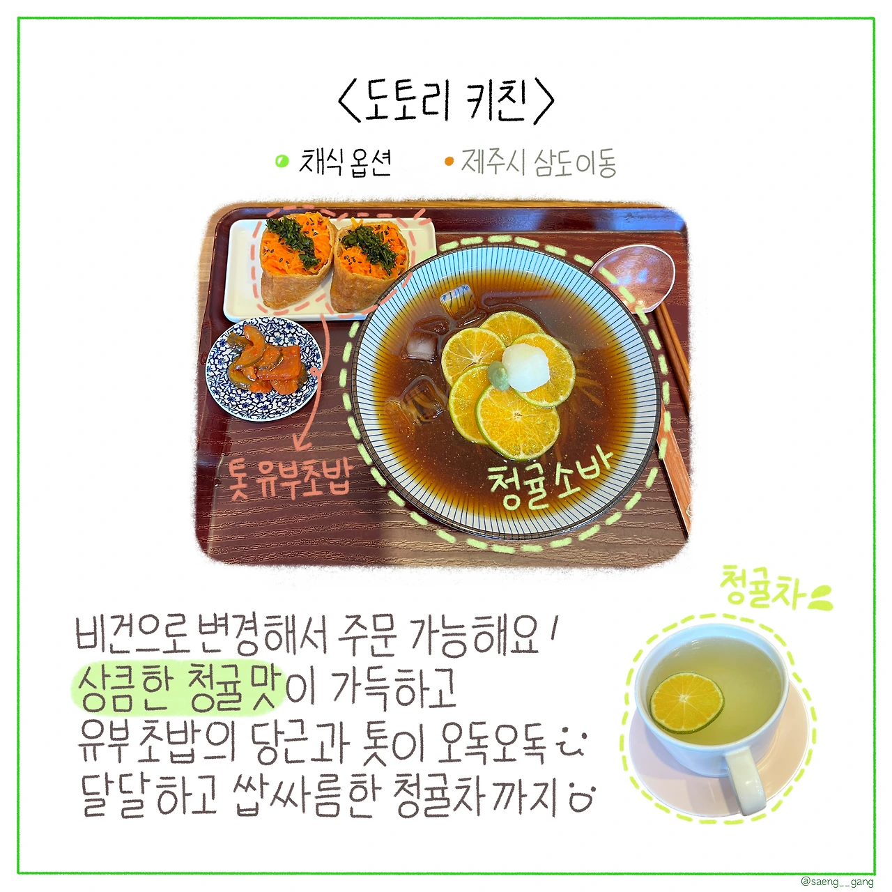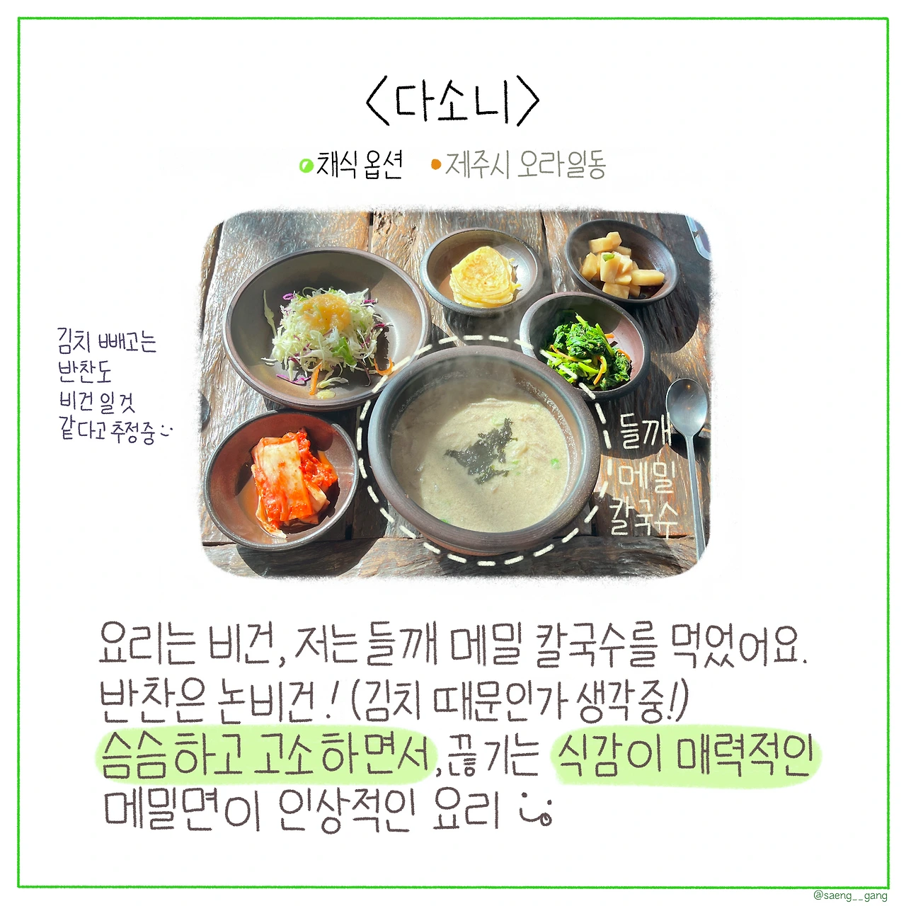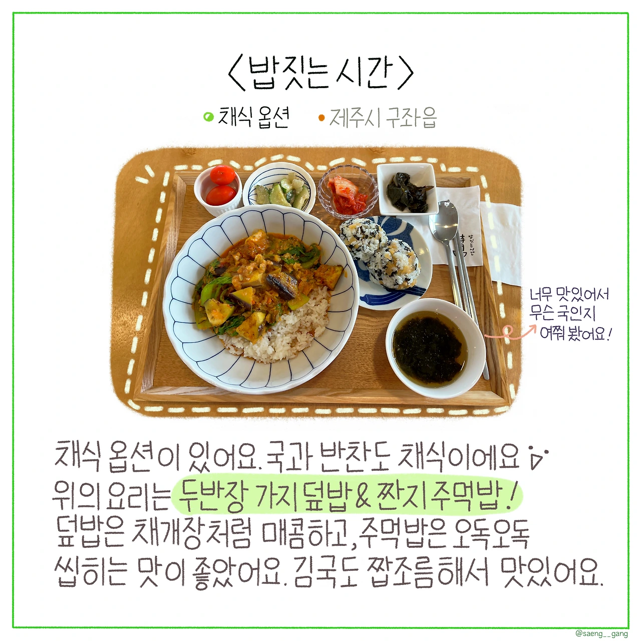여러분이 아시는 제주도 채식 식당들이 있다면 댓글로 알려주세요!