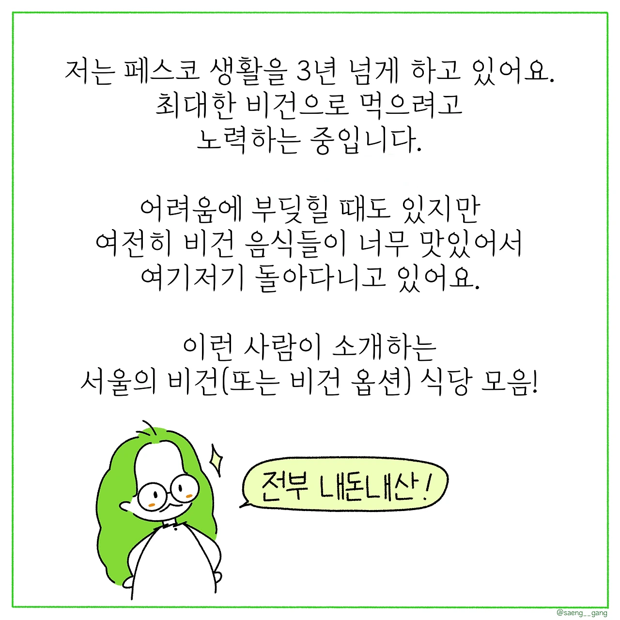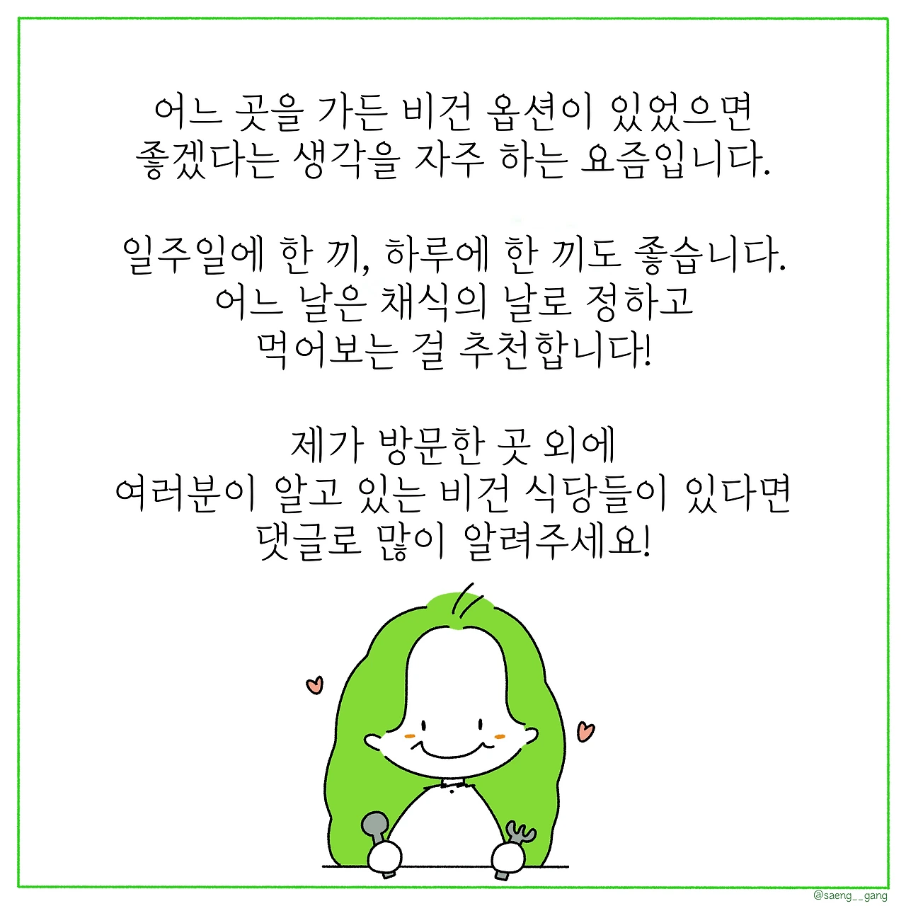 여러분이 알고 있는 비건 식당이 있다면 댓글로 마구마구 알려주세요!