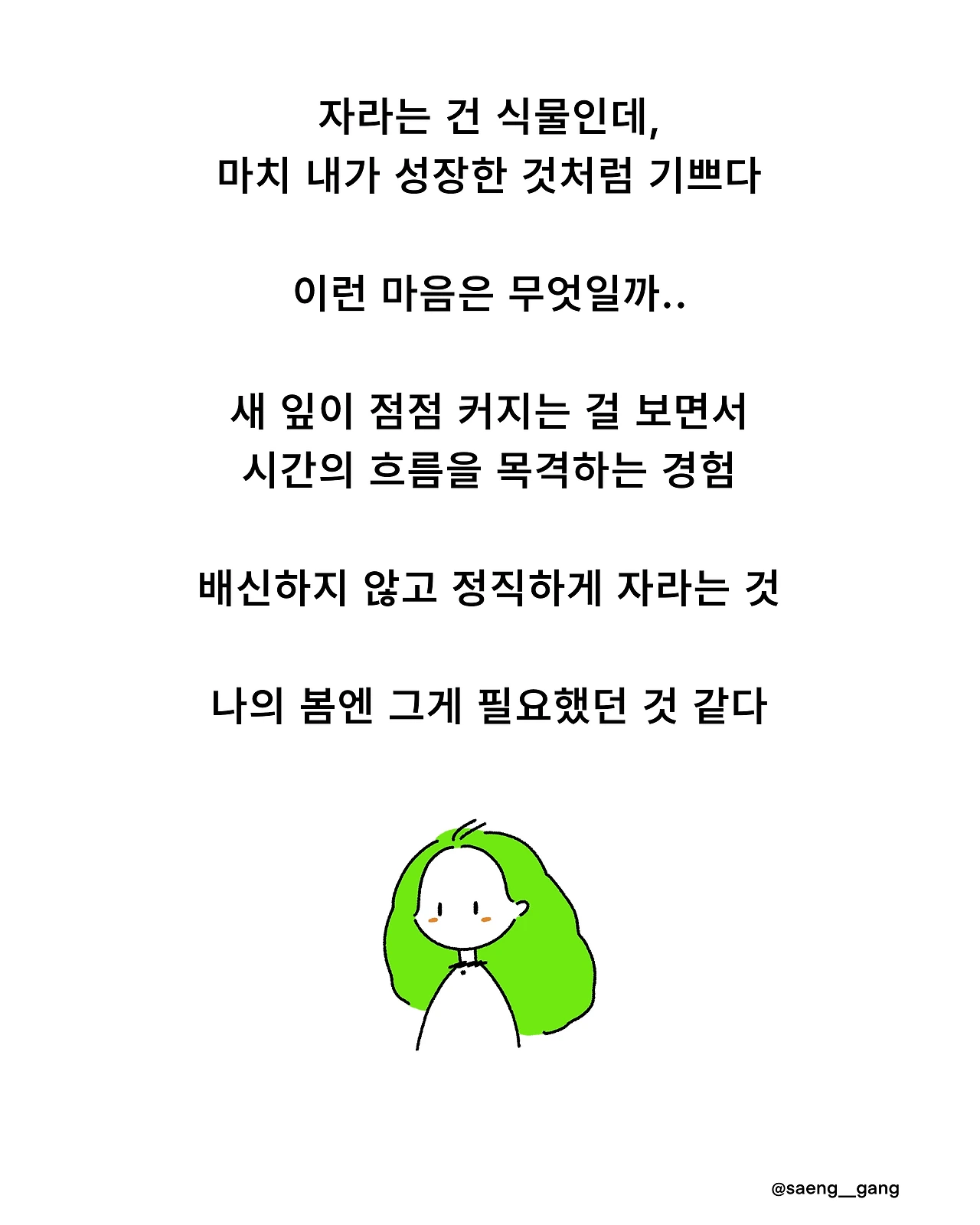 식물의 성장에 기대어 이번 봄을 보낼 것이다.