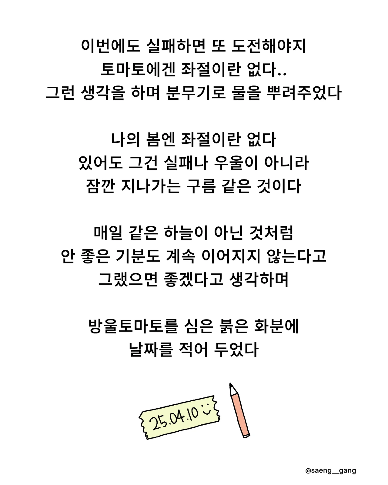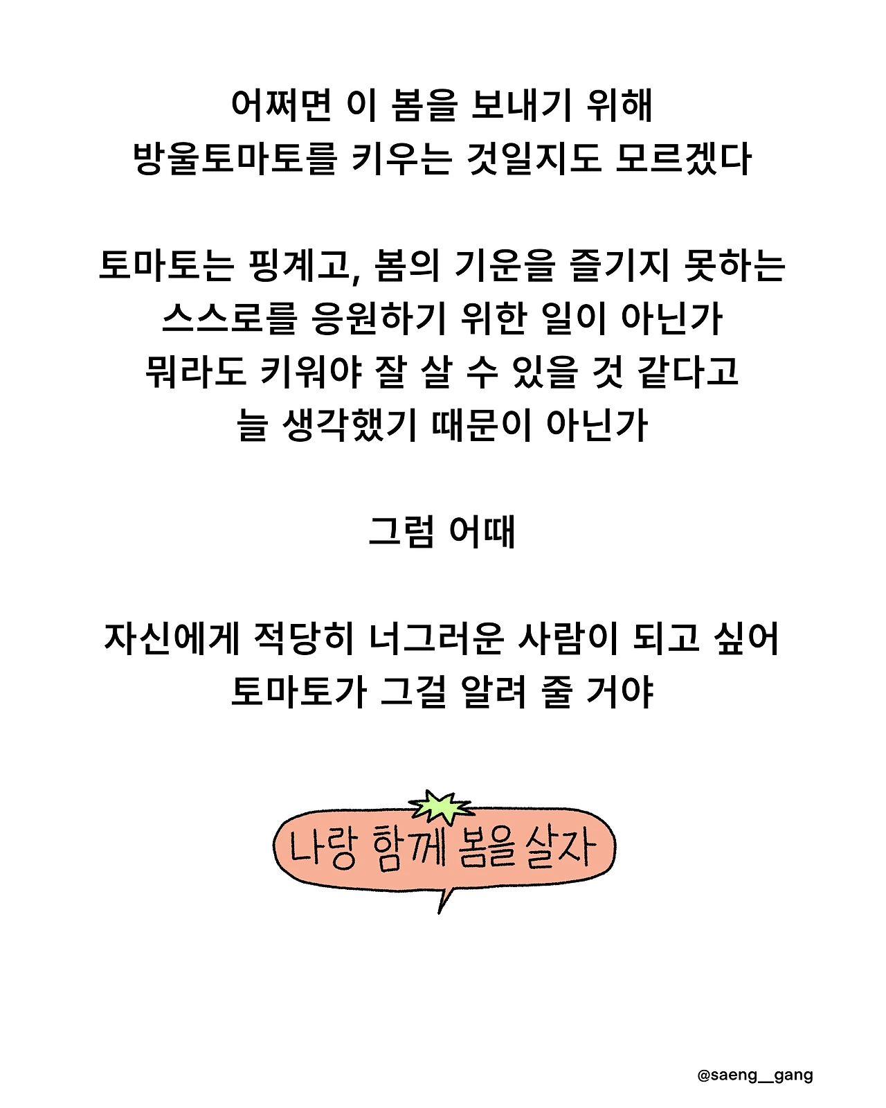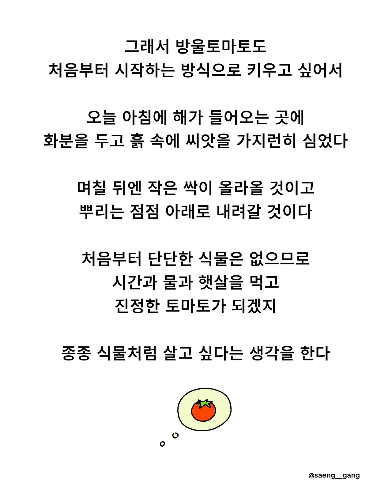 그래서 토마토를 키운다. 새싹이 나면 내 마음도 조금 상쾌해질 것 같아서.