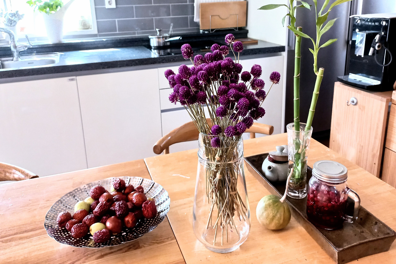 화무십일홍. 꽃이 아무리 붉어도 십일을 가지 못한다는데, 백일홍도 아니고 천일홍이라니. 처음 이름을 들었을 땐 ‘뻥이 좀 심하구나’하고 생각했다. 하지만 천일홍은 진짜 천일을 간다. 일년초지만 천일동안 우리 집 거실에 피어 있다. 약 3년 전에 말려 둔 거실의 천일홍 꽃이 거의 천일을 채워가고 있는 중이지만, 꽃색이 여전히 아름다운 자줏빛을 유지하고 있다. 천일홍을 천일동안 즐길 수 있는 방법은 바로 드라이플라워이다. 까슬거리는 종이 질감의 꽃이 드라이플라워로 딱 좋다.