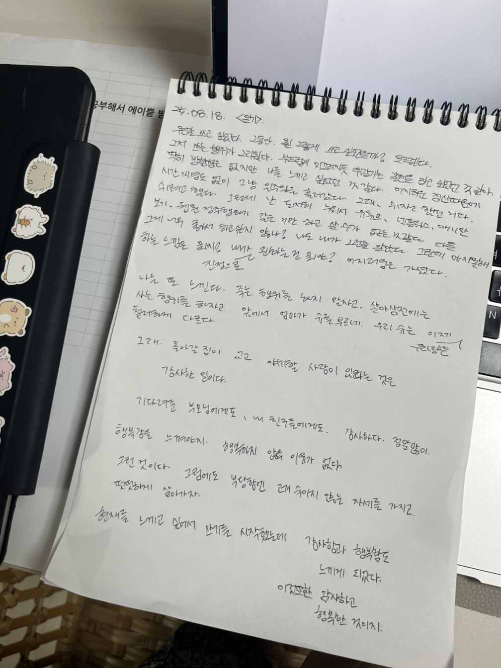 현재를 느끼고 싶어서 쓰기를 시작했는데 감사함과 행복함도 느끼게 되었다.