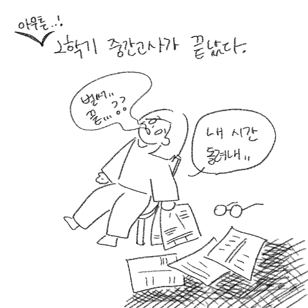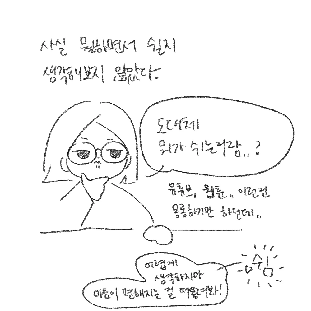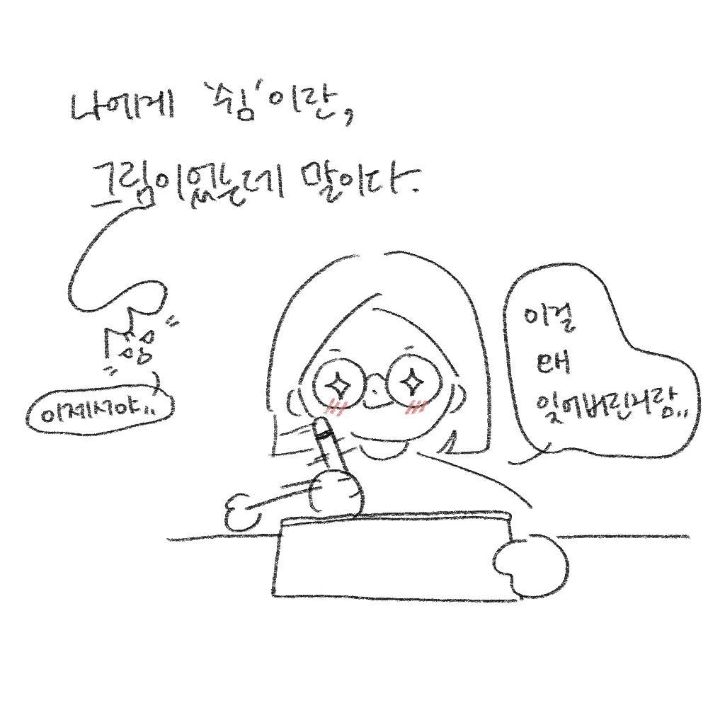 요즘 글을 더 중요시하며, 글을 쓴 후에야 그림을 그리겠단 철칙을 세웠었다. 나름의 시간 절약이었다.. 하지만 소소일상툰은 이름처럼 소소한 내 일상을 일기장에 기록하는 활동이었다. 즉 글로는 딱히 적지 않는 주제라는 거다. 그래서 나는 점점 내 일상보다 깨달음에 더 시선을 두고 살았다.