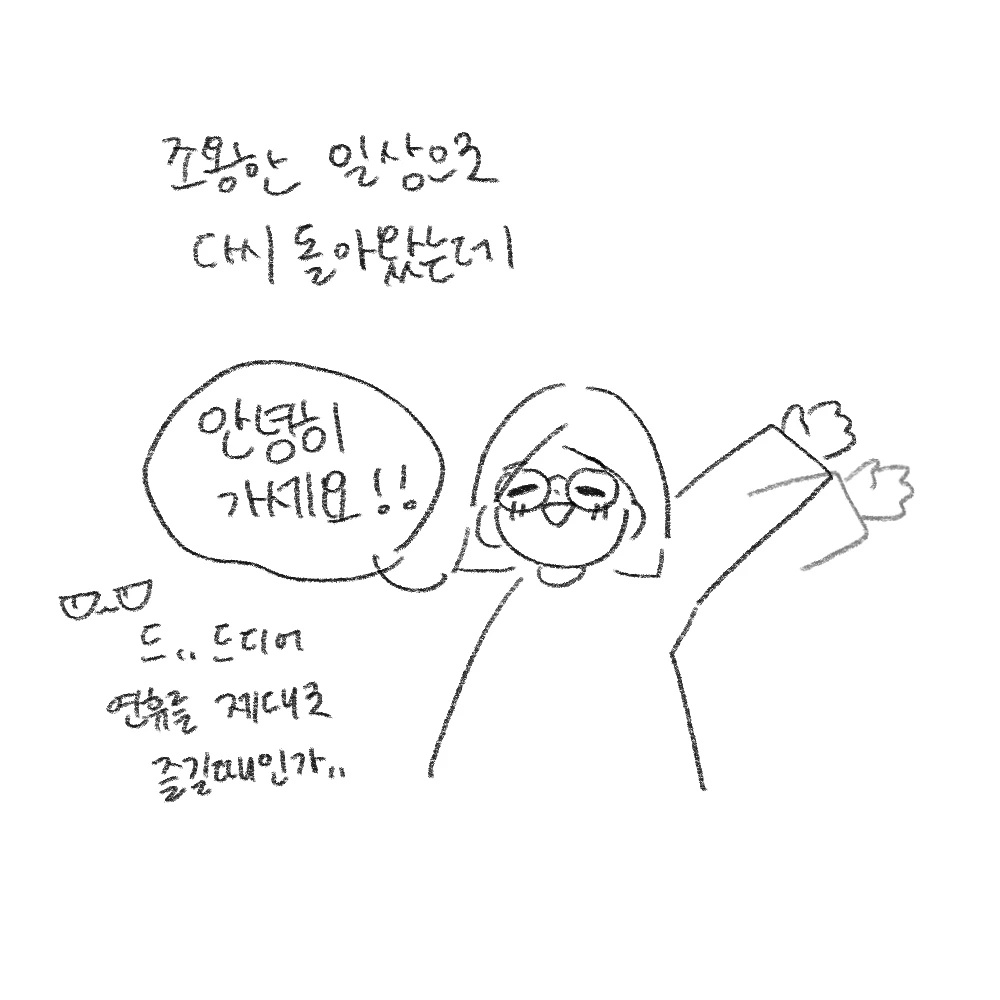 그러다 보니 일상을 살고 있는 나 자신을 제대로 마주하는 시간이 사라져 버렸다. 예전엔 감정의 해방감과 재미 때문에 일상툰을 그렸었다. 그러나 오랜만에 툰을 그리면서 현재 내게 더욱 중요한 의미를 깨닫게 되었다.