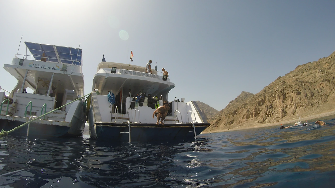다합에서는 대부분의 다이빙 포인트가 걸어서 들어가는 곳이지만 사람을 6명 이상 모아 특별 신청을 하면 멋진 배를 타고 먼 바다에 나가서 보트 다이빙도 할 수 있다. 선착장 왕복 이동 경비에 보트, 조식, 중식, 간식, 공기통 2개 분량의 다이빙이 모두 포함된 가격이 1인 600파운드(약 40,000원). 다이빙이 저렴하다는 동남아도 공기통 한 깡하는데 오 만원 이상이 든다는데 역시 다합은 다이버들의 천국임이 분명하다.
