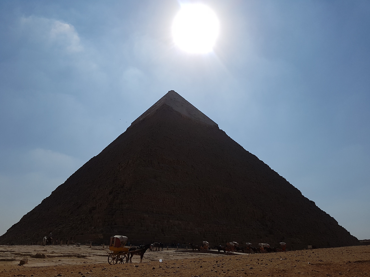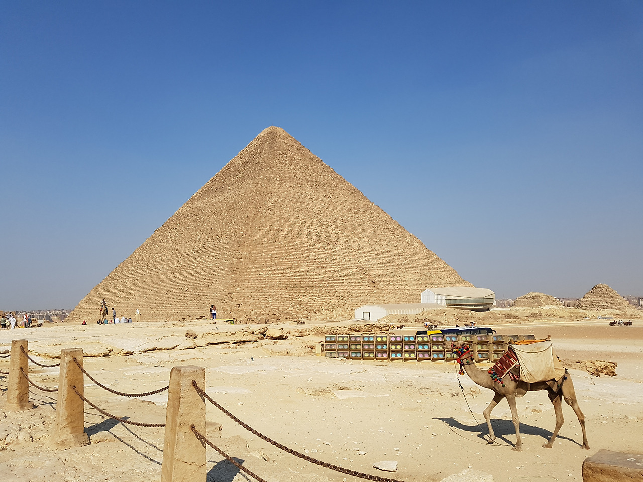 입장권을 산 뒤 유적지로 들어서자마자 기자 피라미드에서 규모가 가장 크다는 '쿠푸왕의 대피라미드'가 위엄 넘치는 자태를 드러냈다. 높이 147m에 기반이 되는 정사각형 한 변의 길이가 무려 230m나 되는 거대한 피라미드 앞에 서니 스스로가 작은 개미같이 느껴졌다.