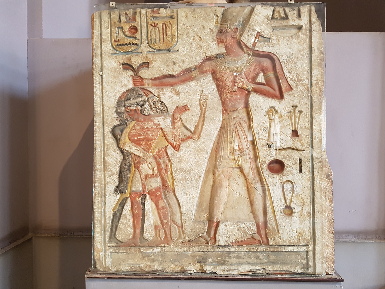 전시실에서 만난 람세스 2세의 동상과 벽화에는 항상 호루스와 세트가 함께 있었는데 그는 자신의 붉은 머리카락은 전쟁과 악의 신인 세트의 것을 매부리 코는 태양의 신 호루스의 부리를 닮은 것이라고 주장했다고 한다. 이렇게 신과 닮은 모습을 통해 자신의 왕권을 더욱 견고히 할 수 있었던 람세스 2세는 그의 강력한 왕권을 생생히 보여주고자 당시 이집트와 문제를 빚고 있던 누비아인들의 머리채를 휘어잡고 있는 자신의 모습을 벽화에 그려 넣기도 했다.