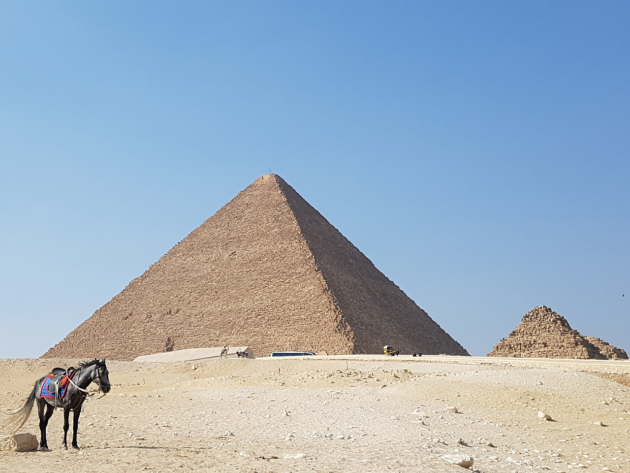 엄청났던 박물관에서의 고대 이집트 맛보기가 끝난 다음 날 우리는 택시를 타고 고대하던 기자 피라미드가 있는 곳으로 향했다. 숙소가 있는 도심에서 지하철을 타고 미니 봉고를 타고 어렵사리 피라미드까지 가는 방법도 있지만 우리는 그냥 우버를 부르기로 했다. 이집트는 기름이 싸서 그런지 도심에서 피라미드 앞까지 22km 정도 되는 거리를 가는데 택시비가 58파운드(약 3,800원)밖에 나오지 않았다. 돈 없는 여행자에게도 안전하고 편안하게 우버를 이용할 수 있게 해주는 이집트 물가에 감사할 따름이었다.