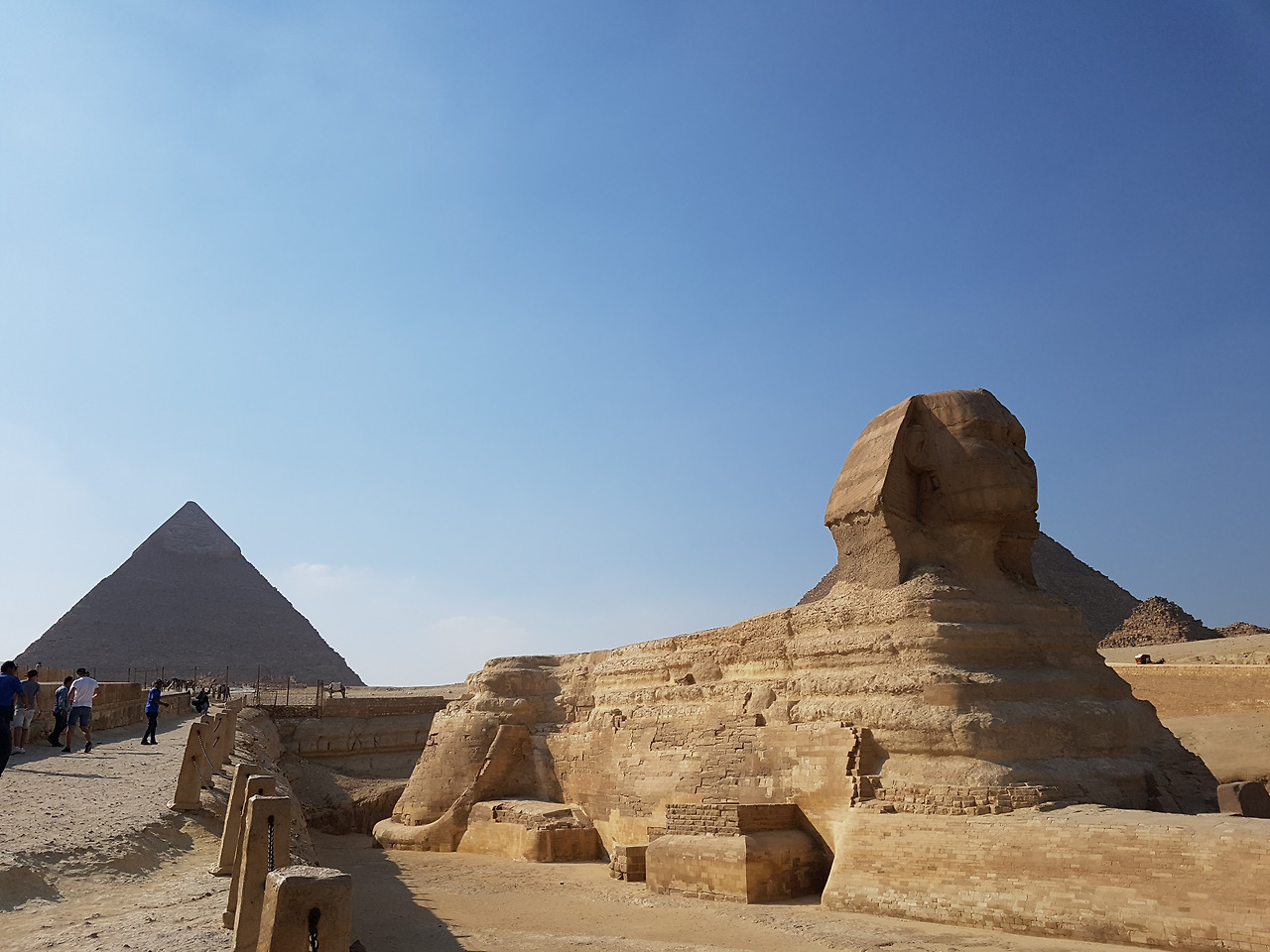 기자 피라미드에서 규모가 가장 작은 '멘카우라 피라미드'까지 모두 둘러보고 마지막으로 그 유명한 스핑크스를 보기 위해 걸음을 옮겼다. 자연 그대로의 거대한 바위를 깎아 만들었다는 스핑크스는 수천 년의 세월에도 여전히 늠름하게 피라미드 앞을 지키고 있었다. 비록 원래 머리 위에 있던 신성한 뱀 조각은 사라진 데다 턱수염은 영국의 대영 박물관에 가 있고, 코도 많이 훼손된 상태였지만 말이다.